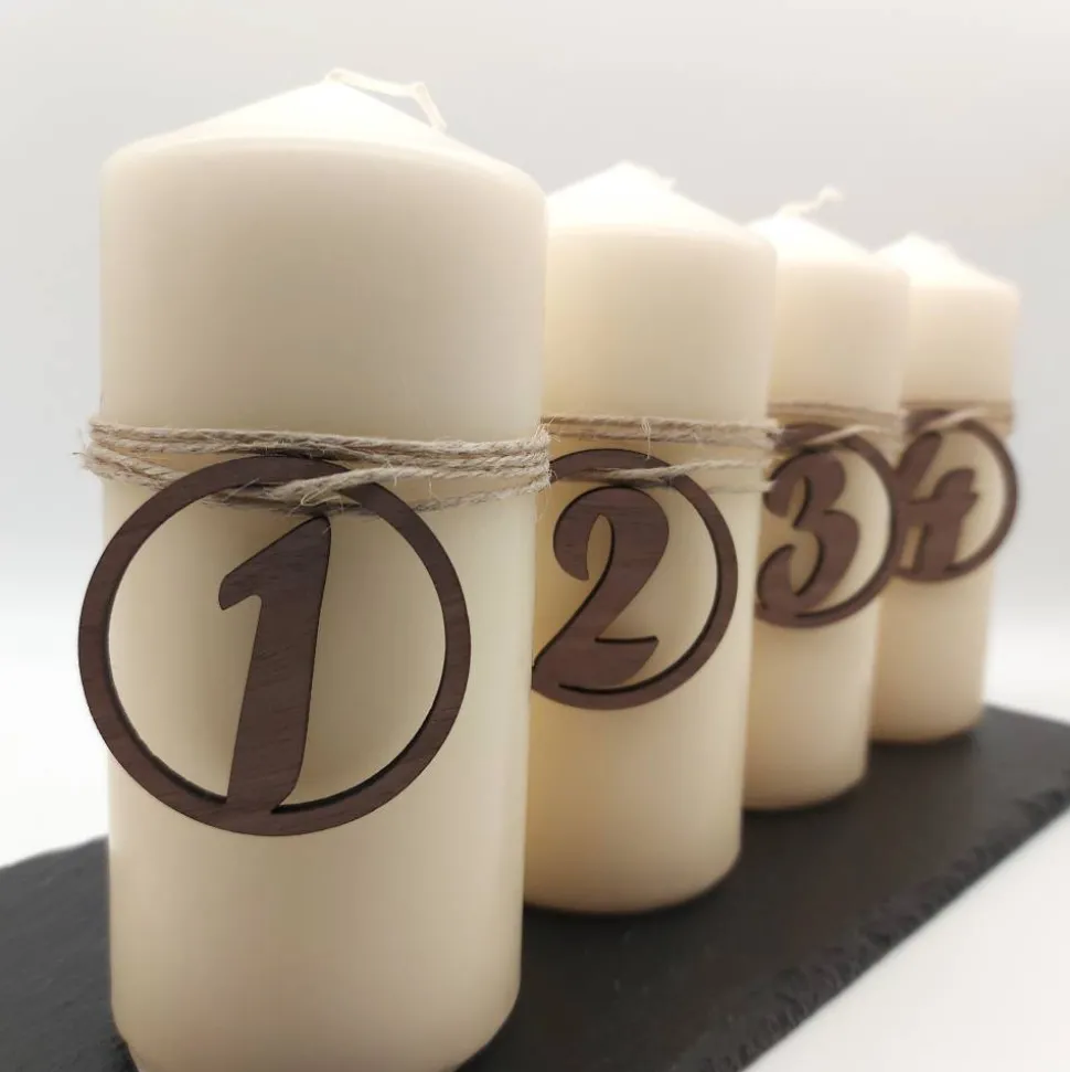 Du kannst die Adventszahlen in den Varianten Birke (helles Holz), Walnuss (dunkles Holz) und Schwarz (lackiert) bei mir erhalten. Nutze die Auswahloption, um mir deinen Wunsch mitzuteilen.