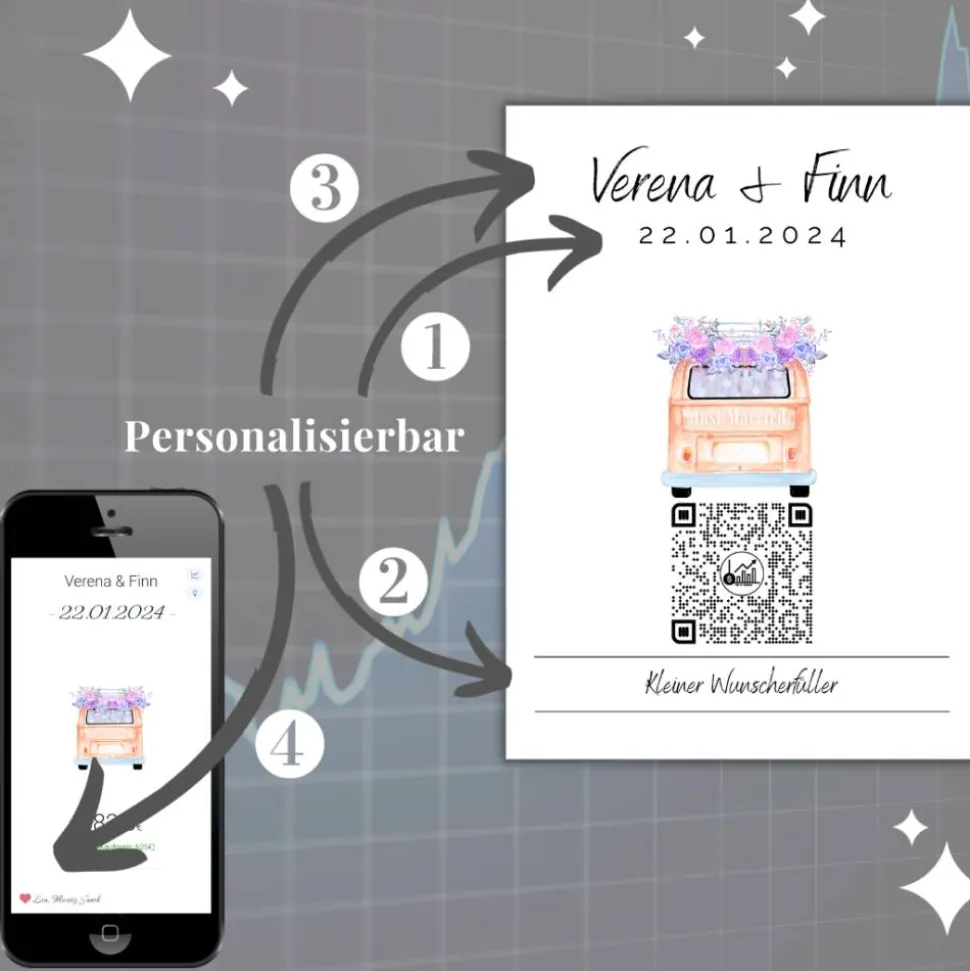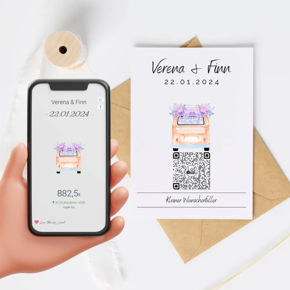 Aktien Etf Geldgeschenk | Personalisiertes Hochzeitsgeschenk | QrCode Geschenkkarte | Bulli