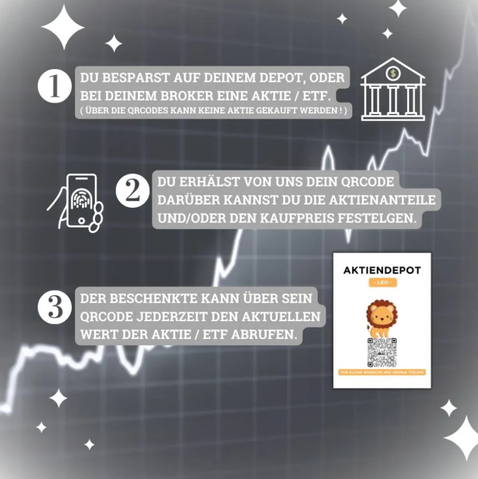 ❤️️ Du besparst in deinem Depot bereits eine Aktie, einen ETF, oder eine Kryptowährung? Oder du möchtest jetzt mit dem besparen für dein Kind, Enkelkind, Patenkind beginnen? Mit dieser QrCode Sparbuch Bild, kannst du die Aktie, ETF, Kryptowährung symbolisch verschenken.