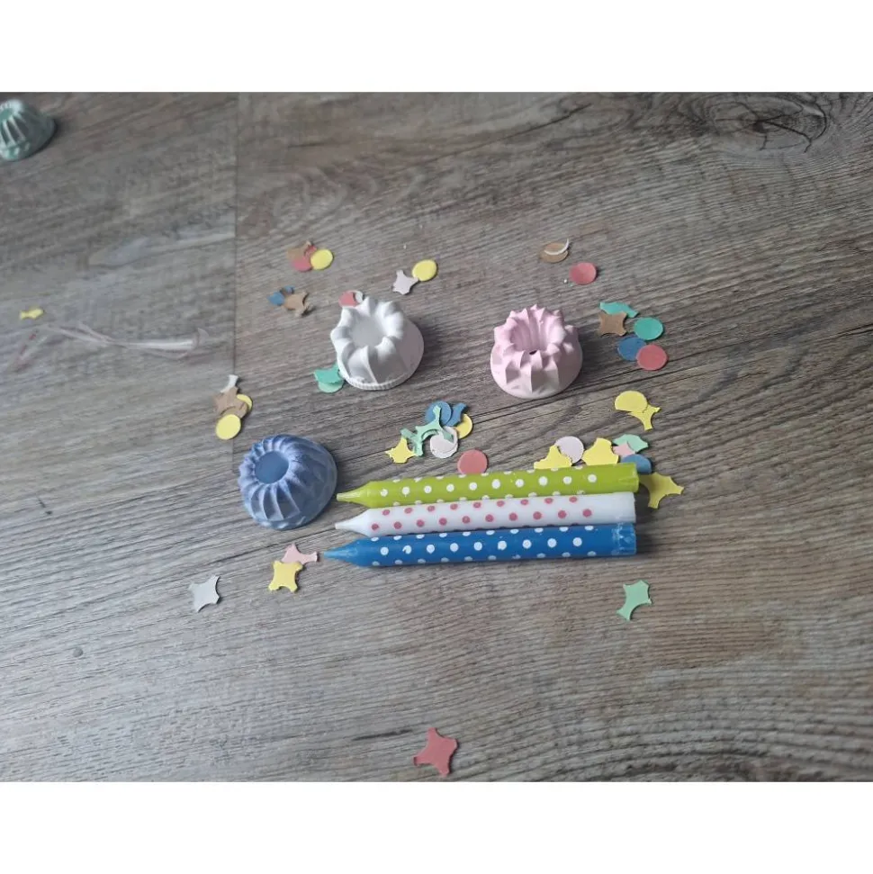 – einer drei Kuchenkerzen(ca. 7,25 cm lang und einem Durchmesser von 0,6 cm )
