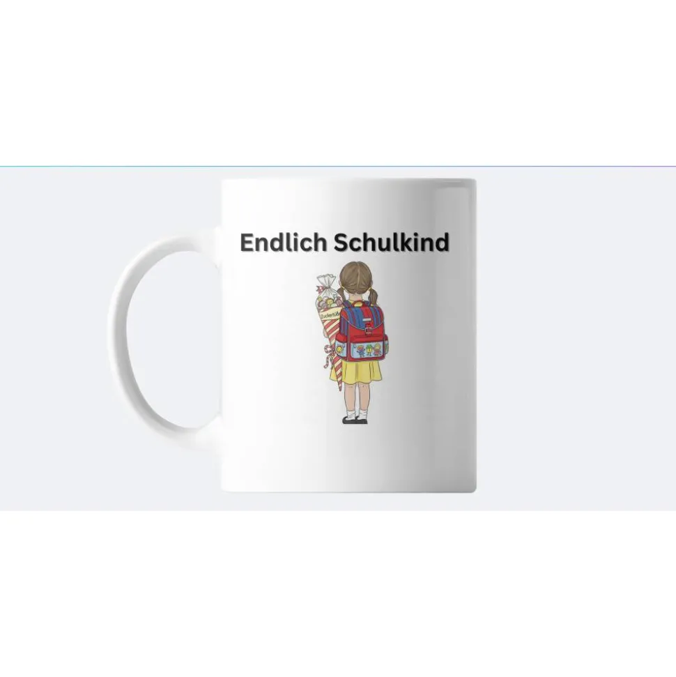 Der erste Schultag ist ein ganz besonderer Meilenstein. Mit dem „Endlich Schulkind“ Keramikbecher schenkst du deinem Kind oder einem lieben Schulkind eine bleibende Erinnerung an diesen aufregenden Tag. Die liebevoll gestaltete Illustration eines kleinen Mädchens mit Schultüte und Schulranzen bringt die Freude des Schulanfangs zum Ausdruck und macht den Becher zum Hingucker.