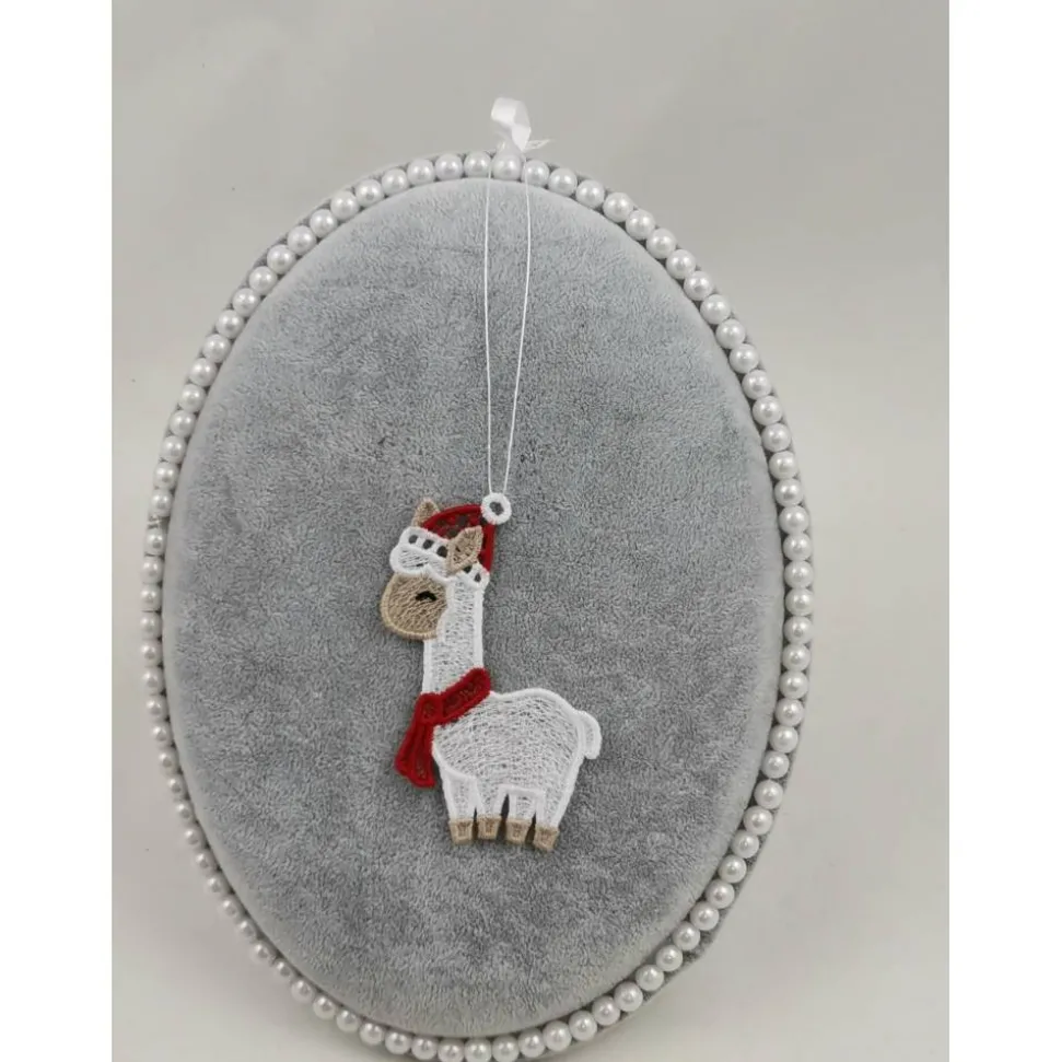Lace Produkte werden mit einer Stickmaschine und Stickgarn auf wasserlöslichem Vlies gestickt. Nach dem Stickvorgang wird das Vlies ausgewaschen, sodass letztendlich nur die Stickerei übrig bleibt. Nach dem Trocknungsvorgang wird noch das Band zum aufhängen befestigt.