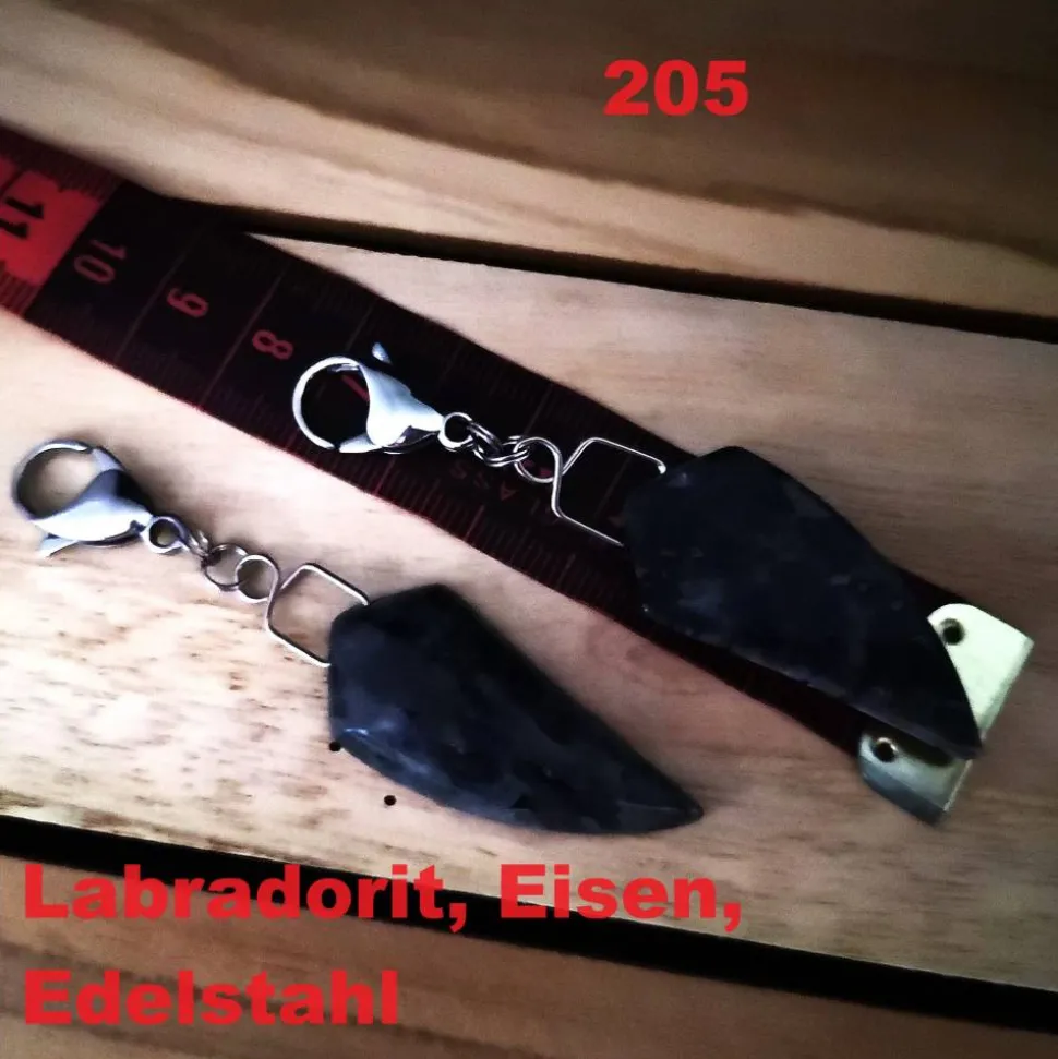 Die Längen der verschiedenen Anhänger sind auf dem Bild (Masband in cm) erkennbar.
