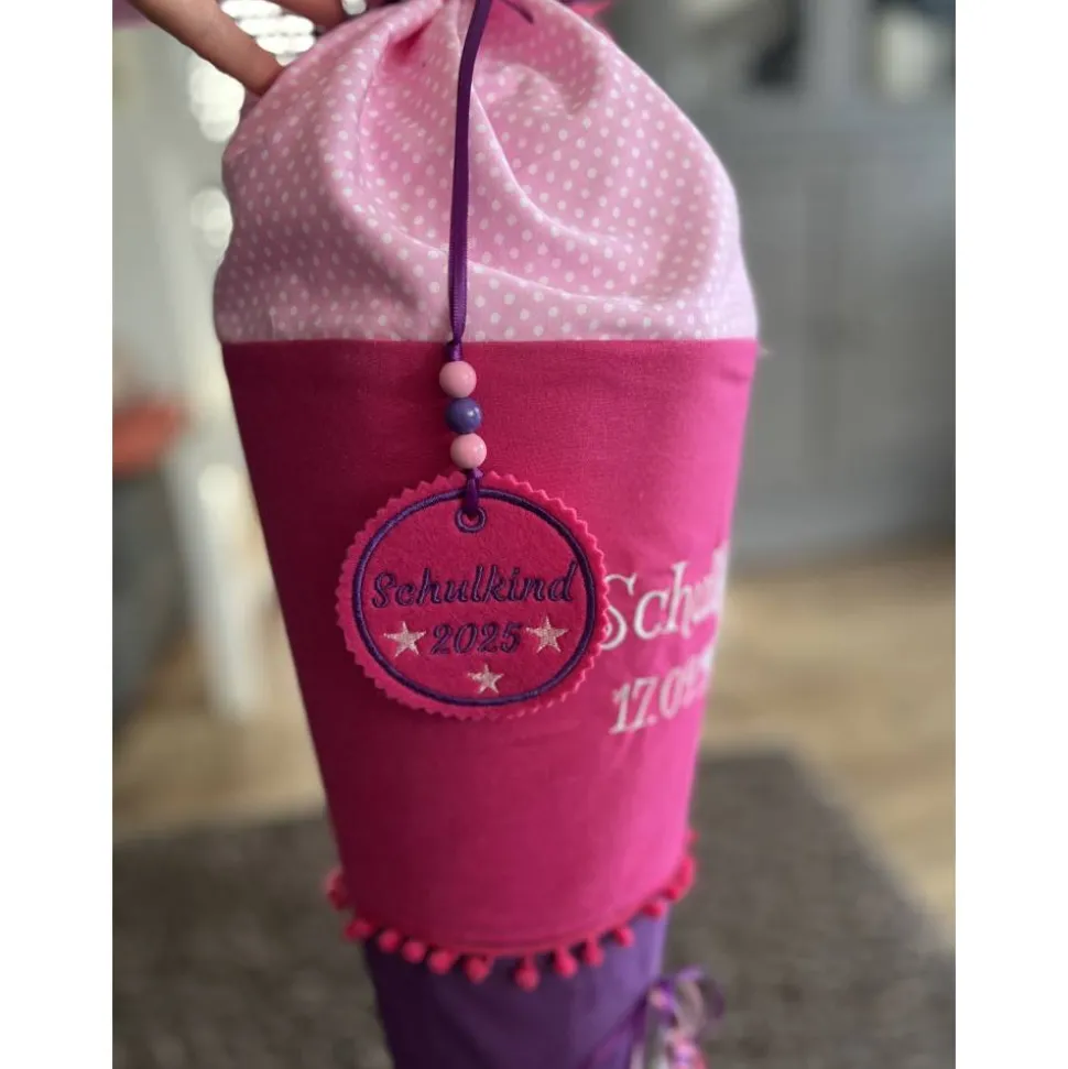Hergestellt in liebevoller Handarbeit – vom Zuschnitt, über das Nähen und Sticken bis hin zur Verpackung – alles Made in Germany. Der Anhänger wird auf 3 mm Filz (100% Polyester) gestickt. Dies garantiert, dass der Anhänger äußerst formstabil und robust ist. Für das Besticken verwenden hochqualitatives Markenstickgarn. Haben sie besondere Wünsche? Dann schreiben sie uns gerne an.