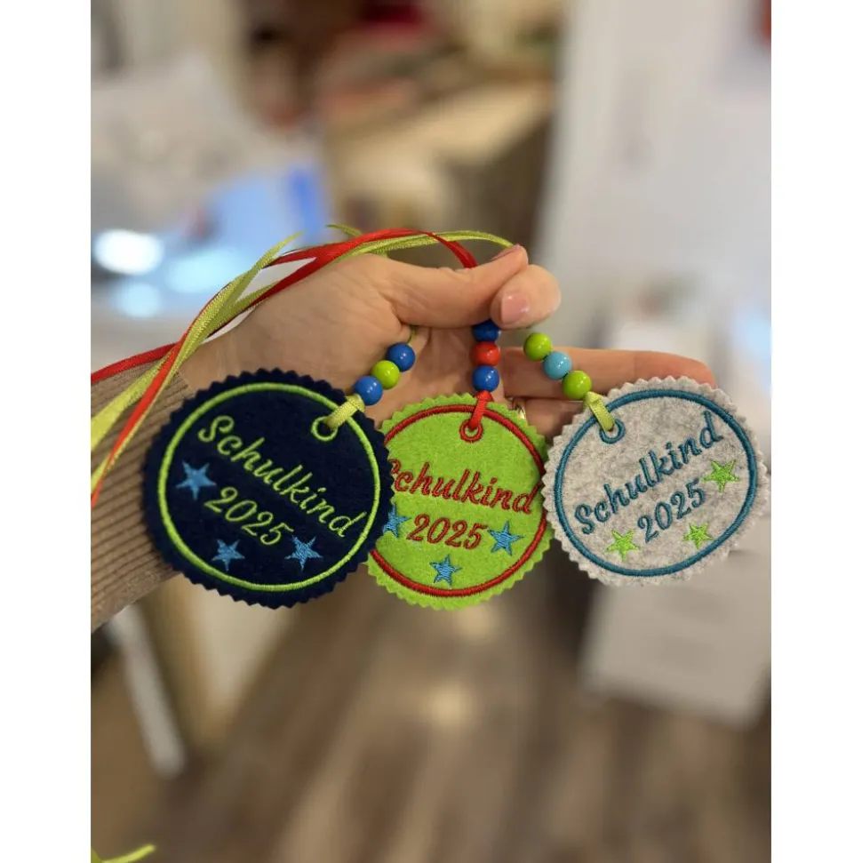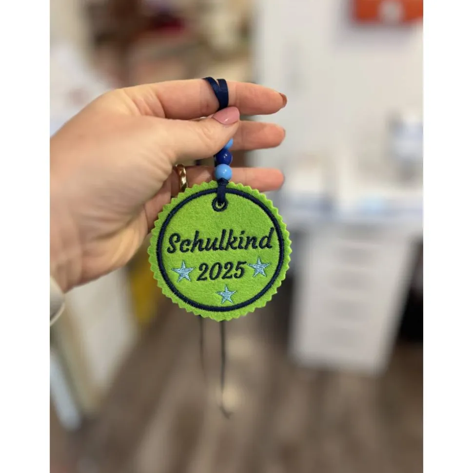 Hergestellt in liebevoller Handarbeit – vom Zuschnitt, über das Nähen und Sticken bis hin zur Verpackung – alles Made in Germany. Der Anhänger wird auf 3 mm Filz (100% Polyester) gestickt. Dies garantiert, dass der Anhänger äußerst formstabil und robust ist. Für das Besticken verwenden hochqualitatives Markenstickgarn. Haben sie besondere Wünsche? Dann schreiben sie uns gerne an.