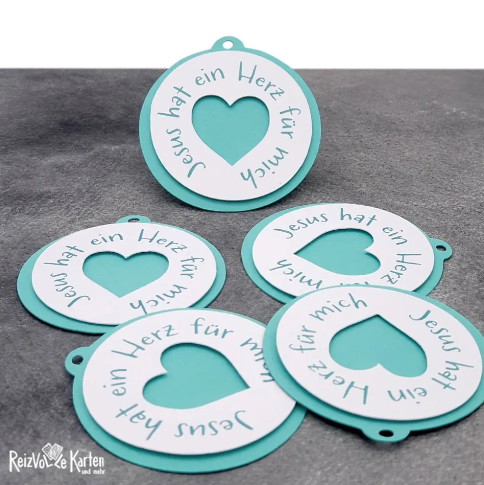 Entdecke liebevoll gestaltete Anhänger für Gastgeschenke zur Kommunion – das perfekte Detail für das Motto ‚Jesus hat ein Herz für mich‘.