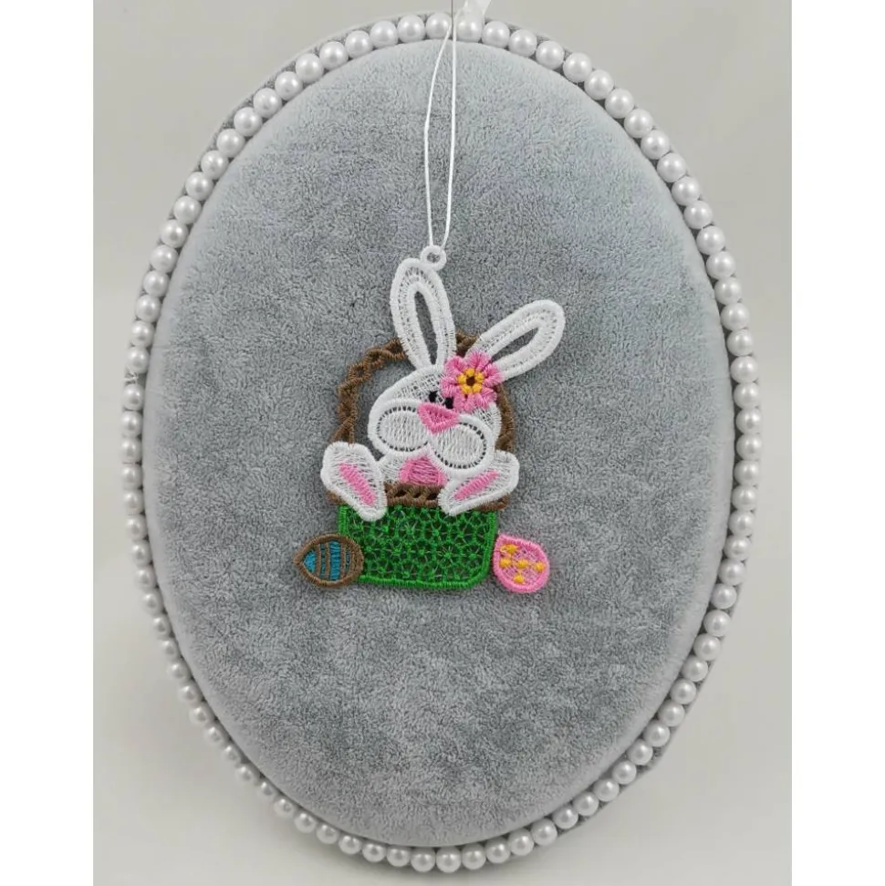 Lace Produkte werden mit einer Stickmaschine und Stickgarn auf wasserlöslichem Vlies gestickt. Nach dem Stickvorgang wird das Vlies ausgewaschen, sodass letztendlich nur die Stickerei übrig bleibt.