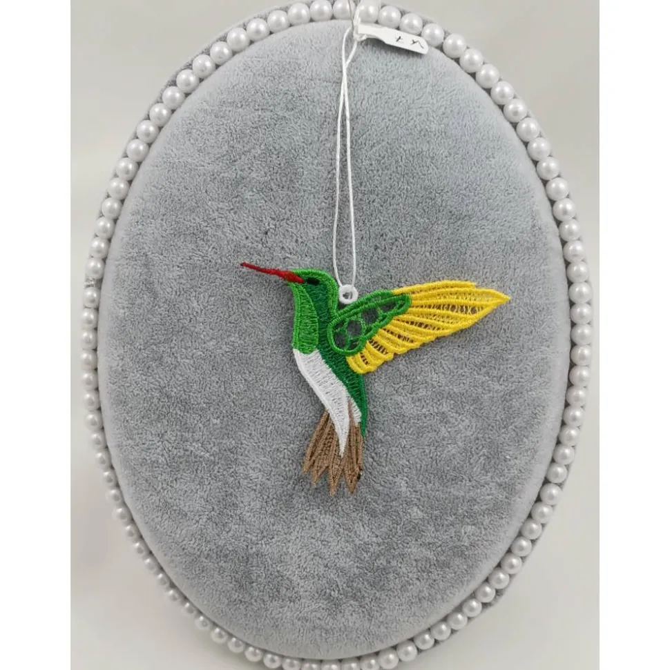 Lace Produkte werden mit einer Stickmaschine und Stickgarn auf wasserlöslichem Vlies gestickt. Nach dem Stickvorgang wird das Vlies ausgewaschen, sodass letztendlich nur die Stickerei übrig bleibt.