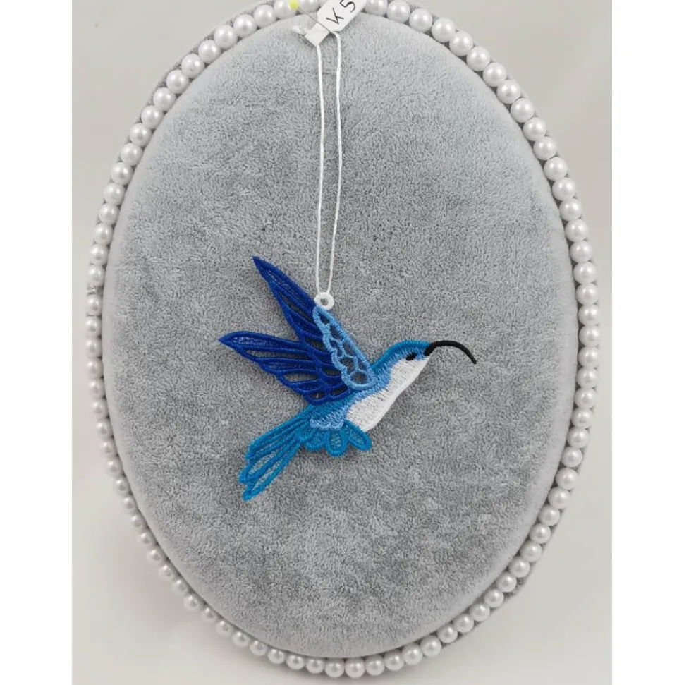 Lace Produkte werden mit einer Stickmaschine und Stickgarn auf wasserlöslichem Vlies gestickt. Nach dem Stickvorgang wird das Vlies ausgewaschen, sodass letztendlich nur die Stickerei übrig bleibt.