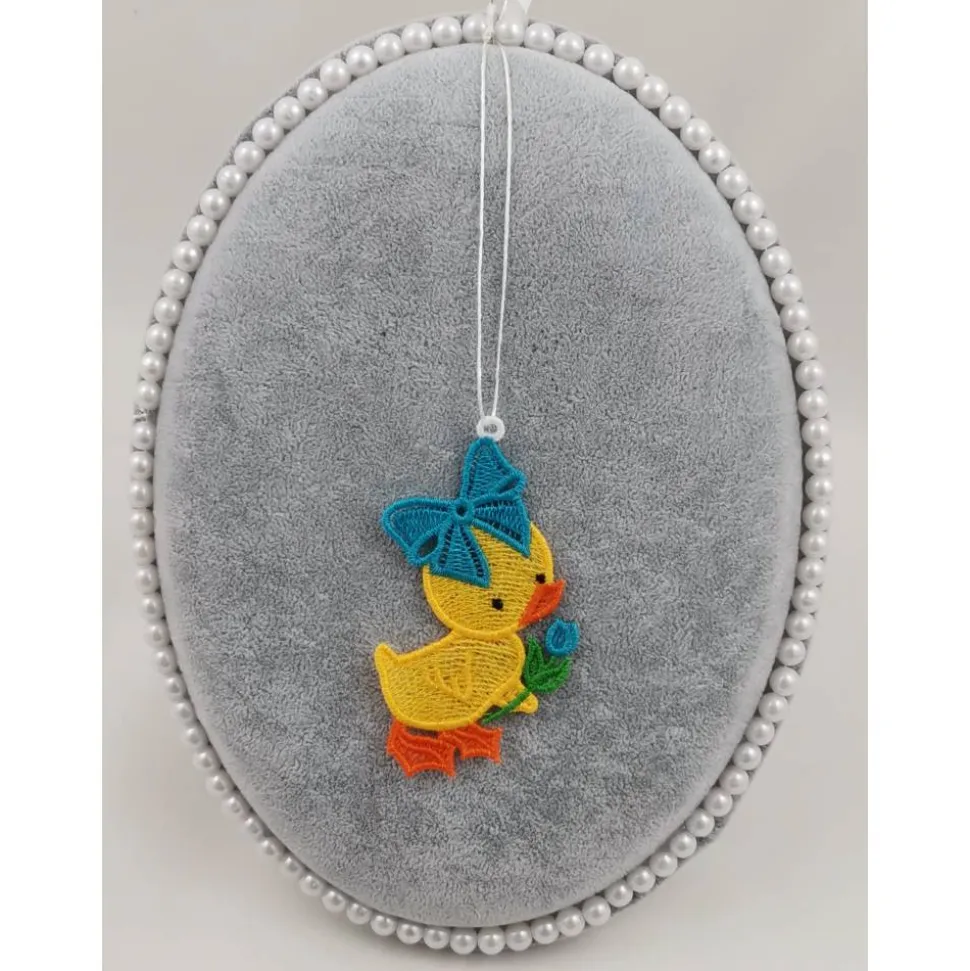 Lace Produkte werden mit einer Stickmaschine und Stickgarn auf wasserlöslichem Vlies gestickt. Nach dem Stickvorgang wird das Vlies ausgewaschen, sodass letztendlich nur die Stickerei übrig bleibt.
