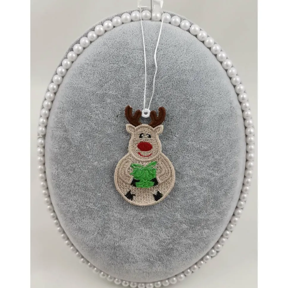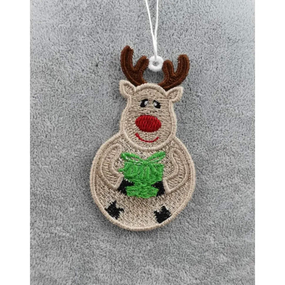 Lace Produkte werden mit einer Stickmaschine und Stickgarn auf wasserlöslichem Vlies gestickt. Nach dem Stickvorgang wird das Vlies ausgewaschen, sodass letztendlich nur die Stickerei übrig bleibt. Nach dem Trocknungsvorgang wird noch das Band zum aufhängen befestigt.