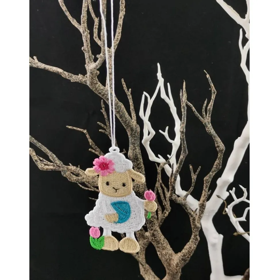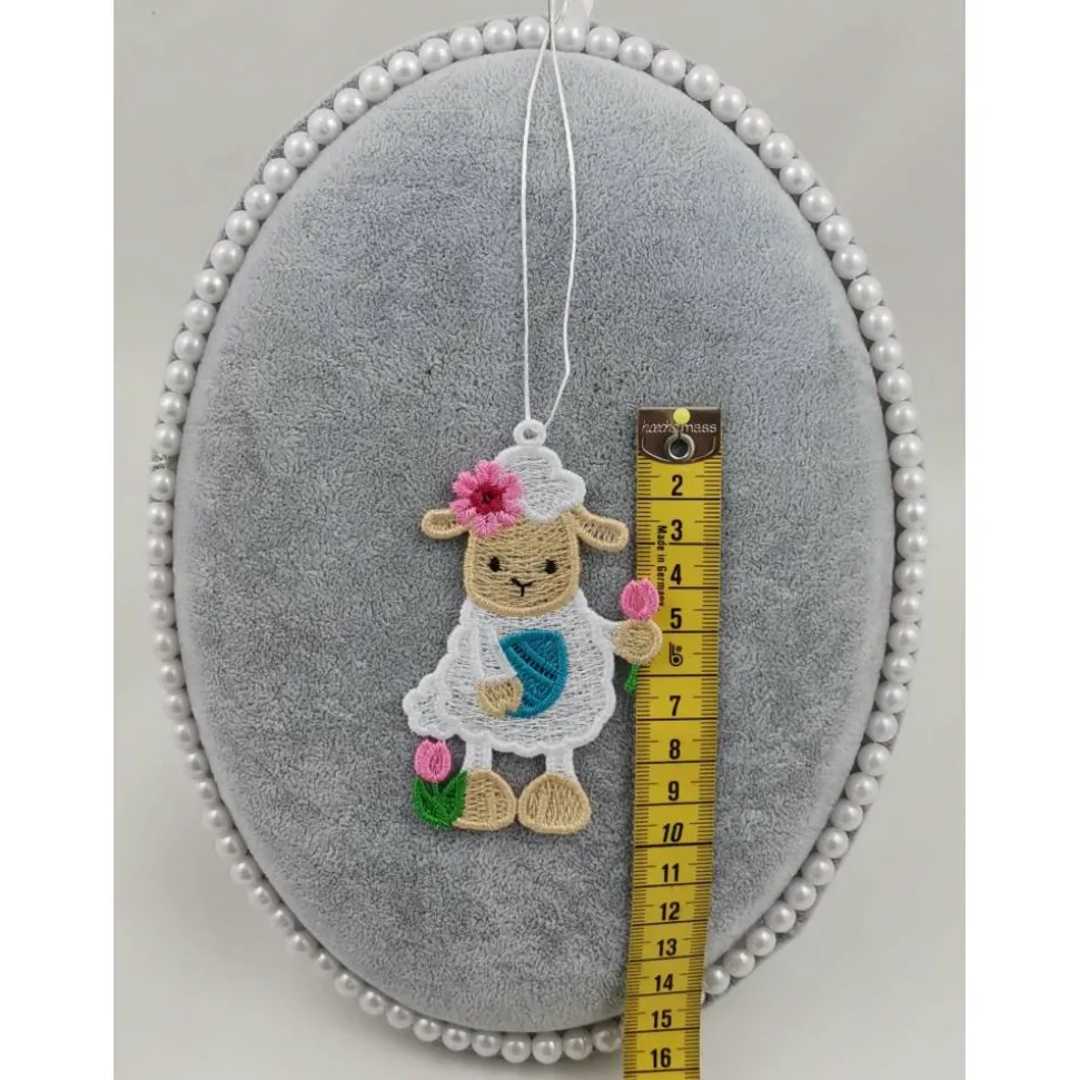 Lace Produkte werden mit einer Stickmaschine und Stickgarn auf wasserlöslichem Vlies gestickt. Nach dem Stickvorgang wird das Vlies ausgewaschen, sodass letztendlich nur die Stickerei übrig bleibt.