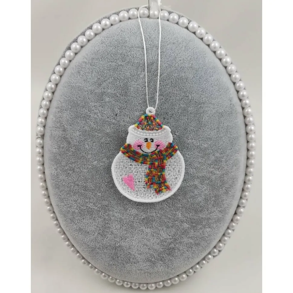 Lace Produkte werden mit einer Stickmaschine und Stickgarn auf wasserlöslichem Vlies gestickt. Nach dem Stickvorgang wird das Vlies ausgewaschen, sodass letztendlich nur die Stickerei übrig bleibt. Nach dem Trocknungsvorgang wird noch das Band zum aufhängen befestigt.