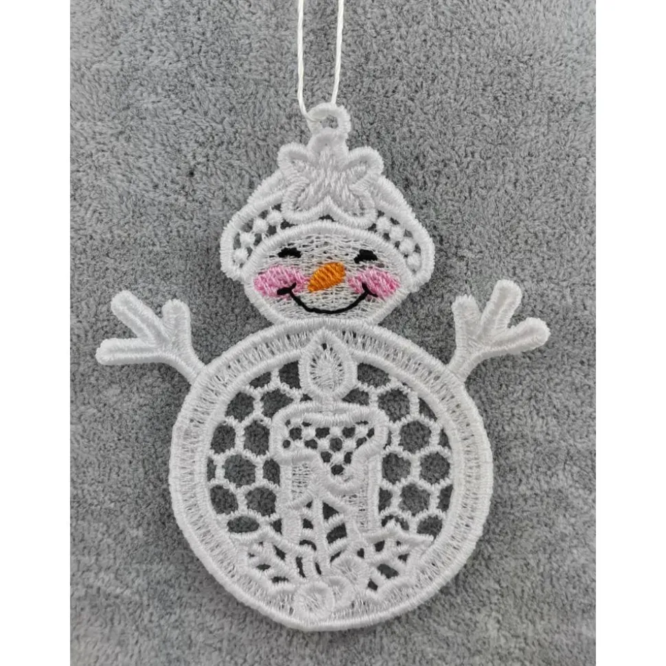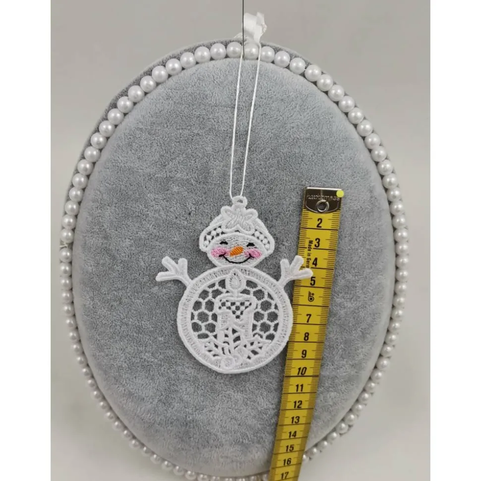 Lace Produkte werden mit einer Stickmaschine und Stickgarn auf wasserlöslichem Vlies gestickt. Nach dem Stickvorgang wird das Vlies ausgewaschen, sodass letztendlich nur die Stickerei übrig bleibt. Nach dem Trocknungsvorgang wird noch das Band zum aufhängen befestigt.