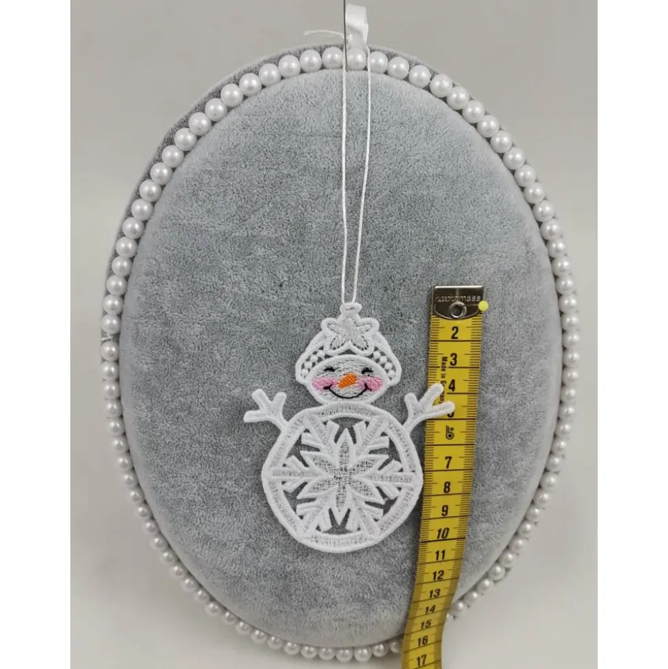 Lace Produkte werden mit einer Stickmaschine und Stickgarn auf wasserlöslichem Vlies gestickt. Nach dem Stickvorgang wird das Vlies ausgewaschen, sodass letztendlich nur die Stickerei übrig bleibt. Nach dem Trocknungsvorgang wird noch das Band zum aufhängen befestigt.