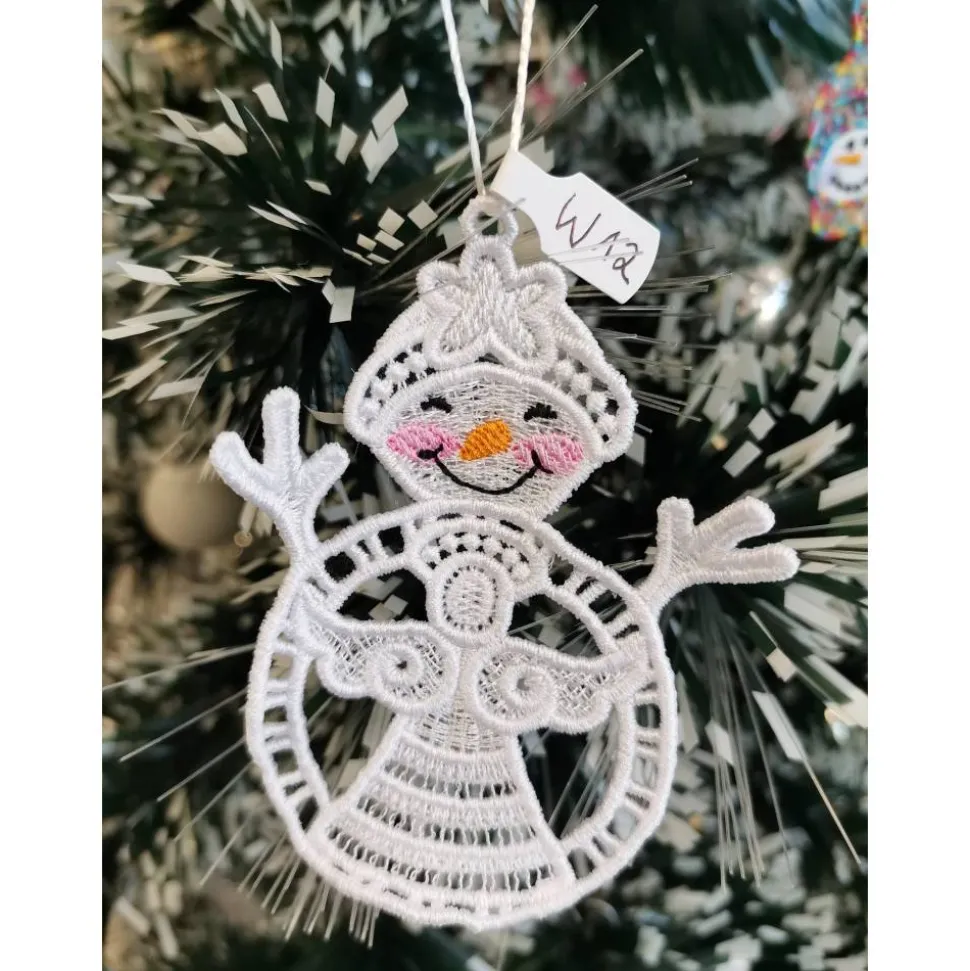 Lace Produkte werden mit einer Stickmaschine und Stickgarn auf wasserlöslichem Vlies gestickt. Nach dem Stickvorgang wird das Vlies ausgewaschen, sodass letztendlich nur die Stickerei übrig bleibt. Nach dem Trocknungsvorgang wird noch das Band zum aufhängen befestigt.