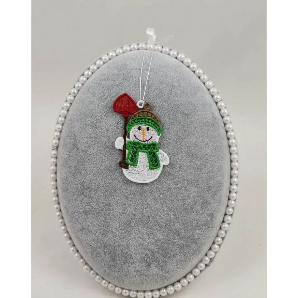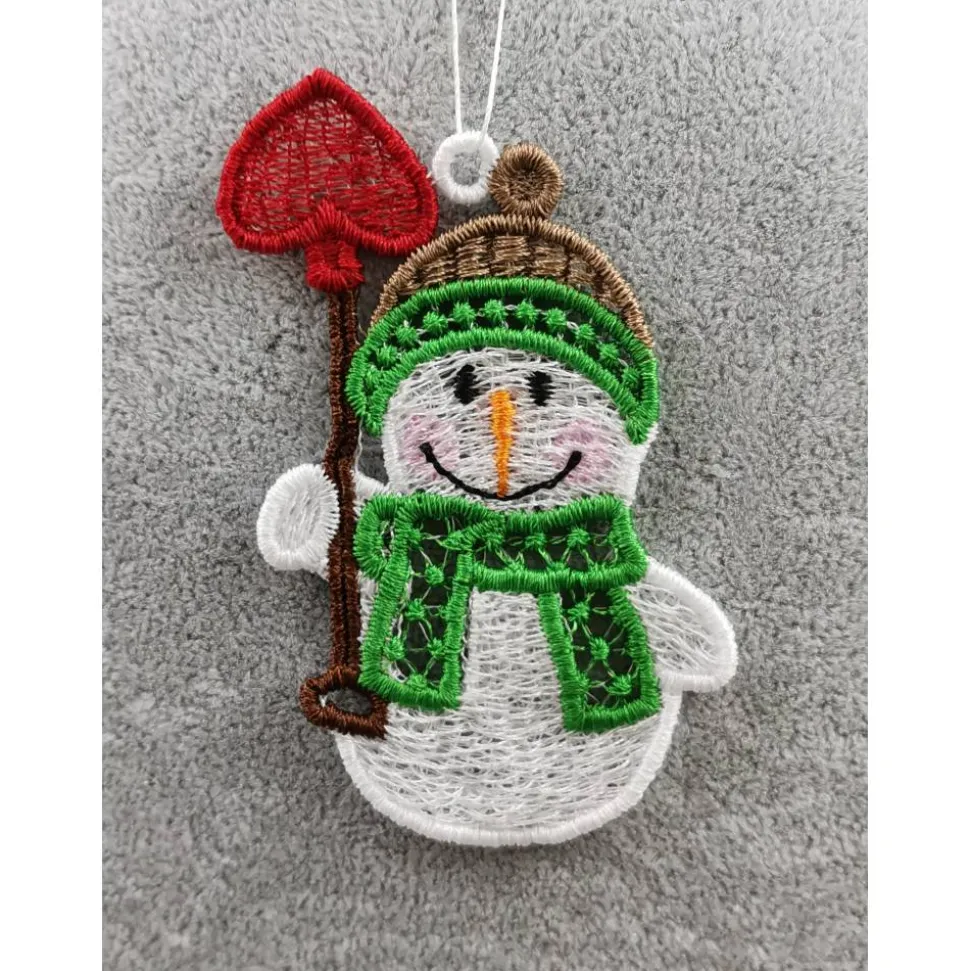 Lace Produkte werden mit einer Stickmaschine und Stickgarn auf wasserlöslichem Vlies gestickt. Nach dem Stickvorgang wird das Vlies ausgewaschen, sodass letztendlich nur die Stickerei übrig bleibt. Nach dem Trocknungsvorgang wird noch das Band zum aufhängen befestigt.