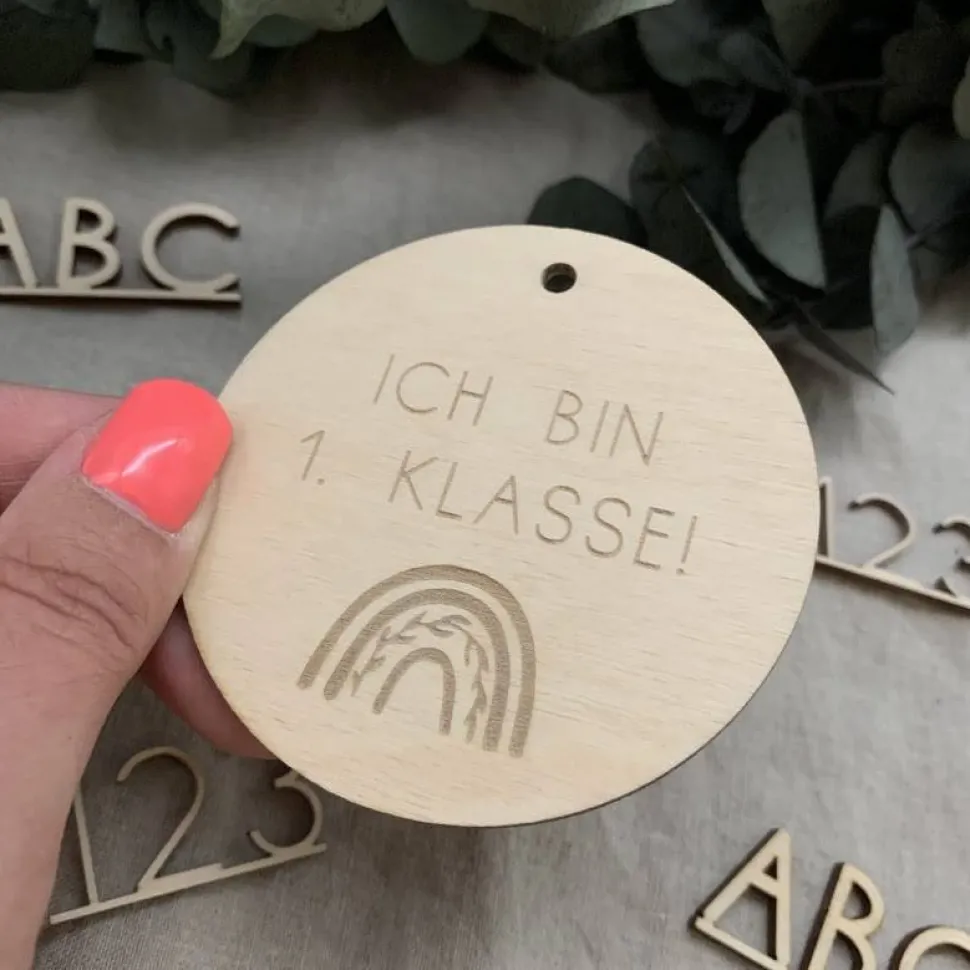 – Holz ist ein Naturmaterial, weshalb es sich bei den abgebildeten Fotos um Beispielbilder handelt. Das Holz ist immer unterschiedlich hell und kann auch kleine Unreinheiten in der Maserung aufweisen. Manchmal versteckt sich auch ein kleiner Ast auf der Oberfläche. Unterschiedliche Maserungen sind gewollt und geben jedem Stück seinen einzigartigen Charakter und Charme. Der Anhänger wird gebrannt und weist daher den typischen Gravureffekt auf. Am Rand können durch das Lasern Schmauchspuren entstehen. All das stellt kein Reklamationsgrund dar.
