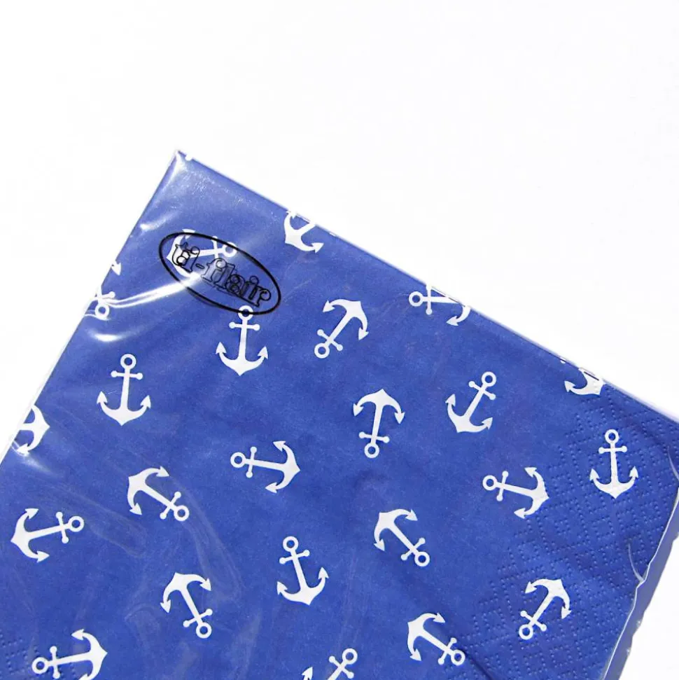 Perfekte Tischdeko für eine Hochzeit. 20 Papierservitten in blau mit einem weißen Anker.