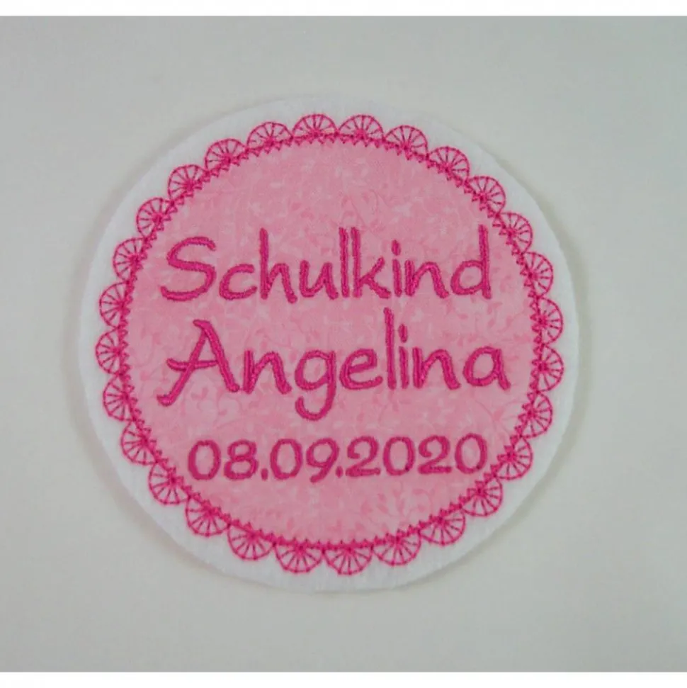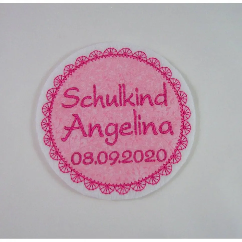Gesticktes Motiv auch mit Namen und Geburtsdatum, oder anderem Text.