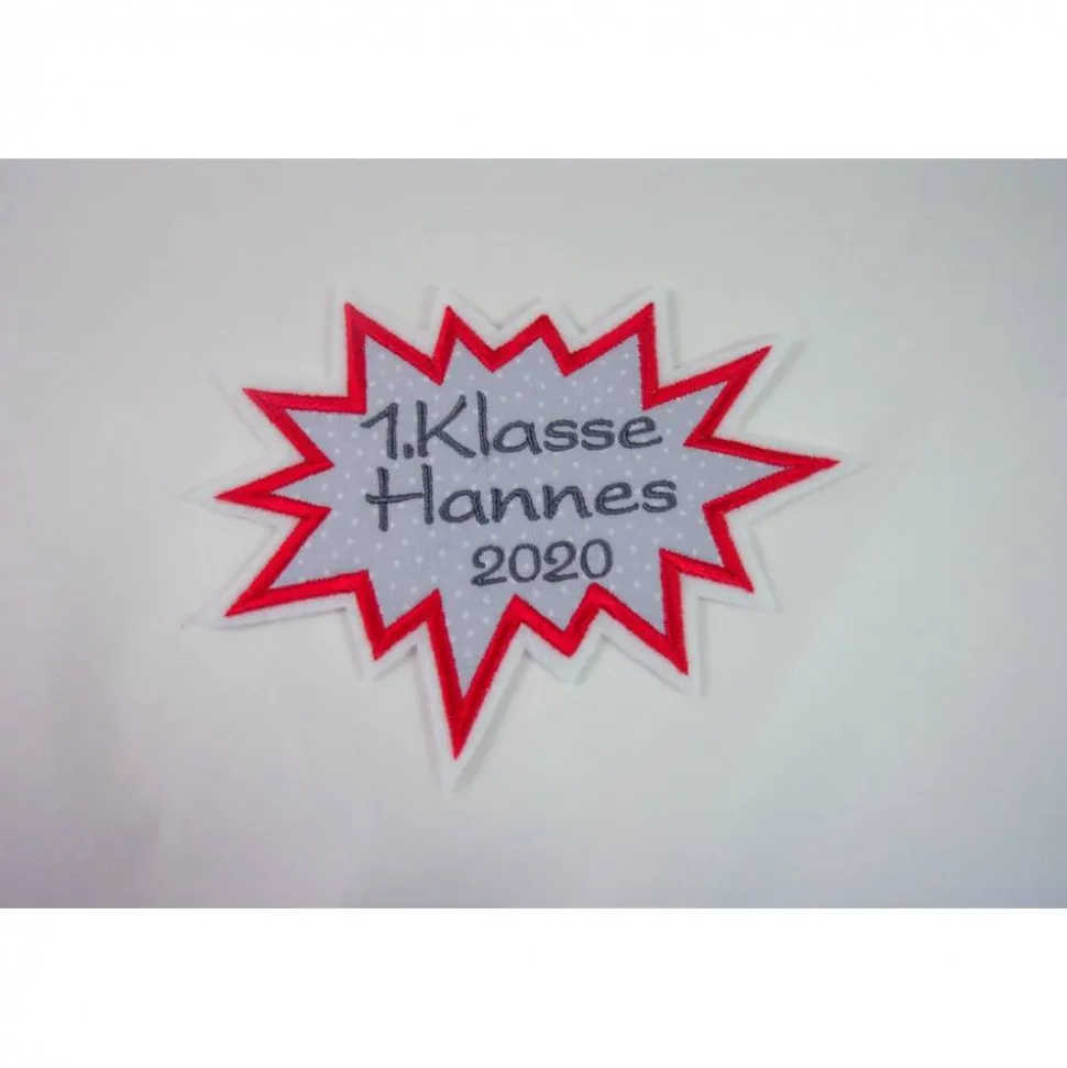 Gesticktes Motiv auch mit Namen und Geburtsdatum, oder anderem Text.