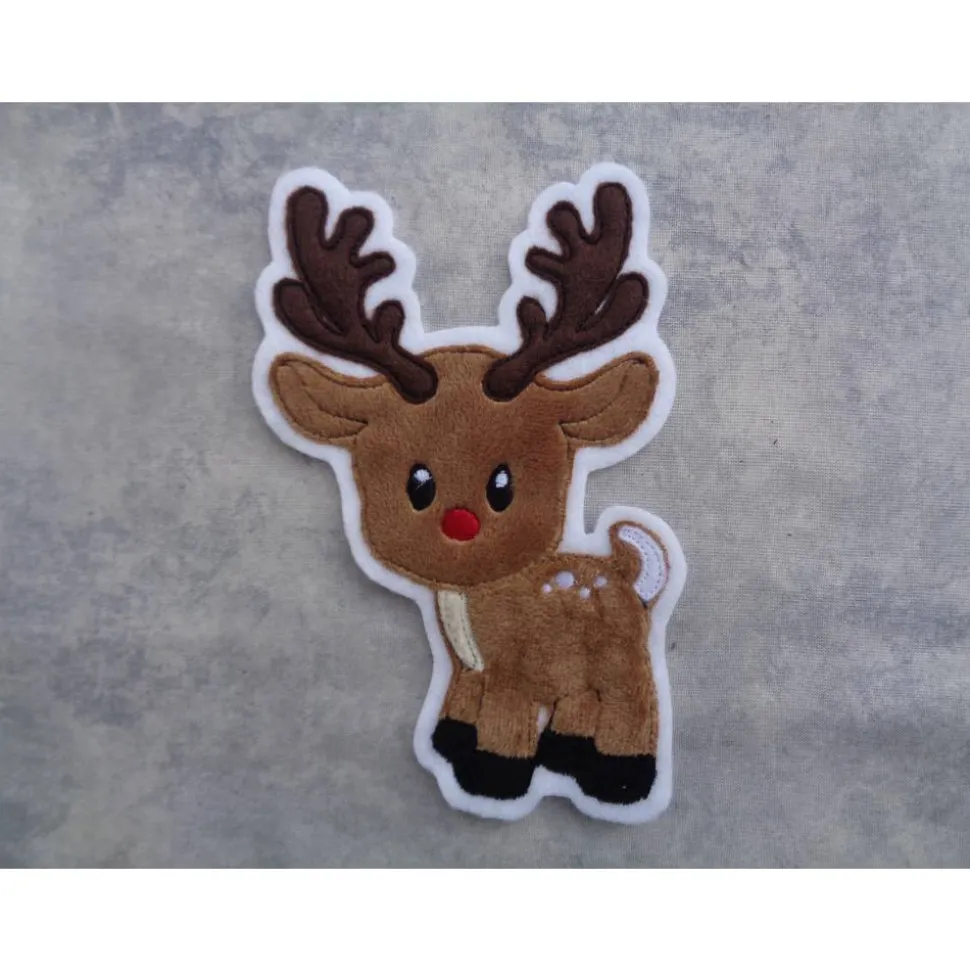 Verwendetes Material: Nickiplüsch (80 % Baumwolle, 20 % Polyester), Kunstfilz (100 % Polyester), Stickvlies (100 % Polyester), und Markenstickgarn (100 % Polyester).