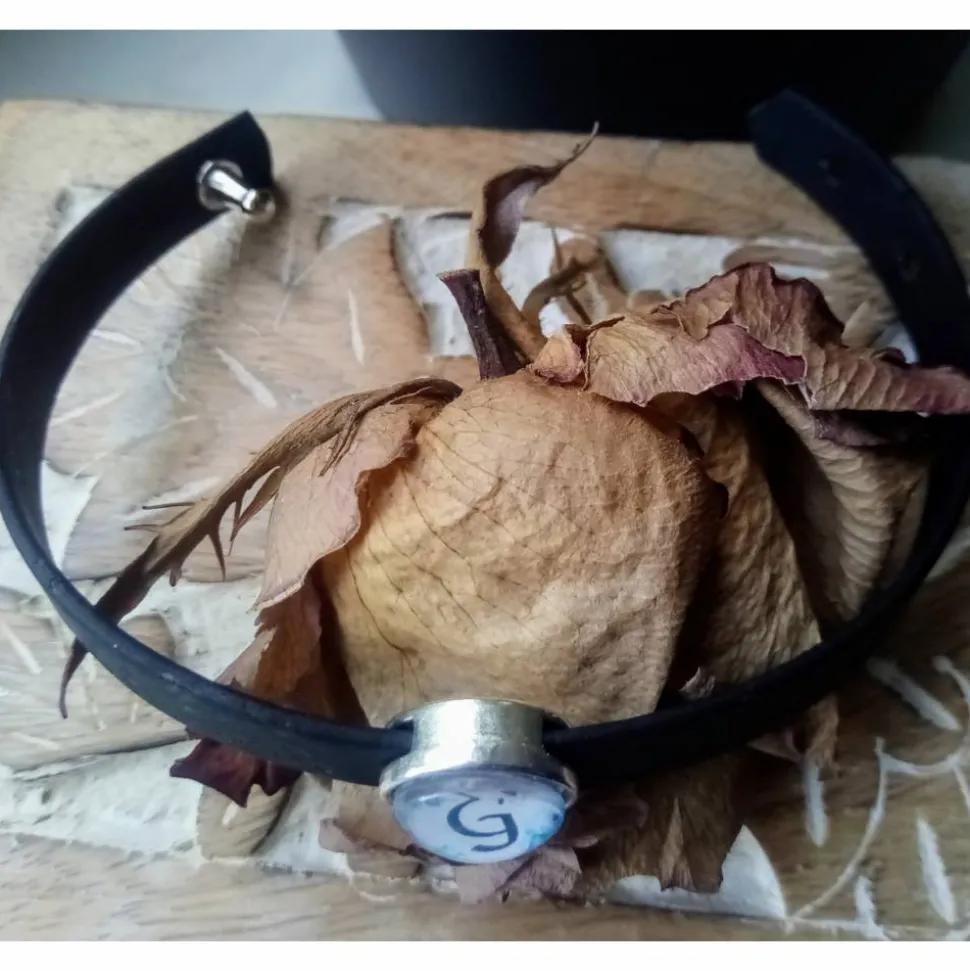 Material: Glas, Fotopapier, Kleber und Metall für den Slider und Verschluss. Das Band ist aus schwarzem Kork. Kork ist ein natürliches Produkt, ist nachwachsend, vegan, wasserabweisend, pflegeleicht und weich auf der Haut.