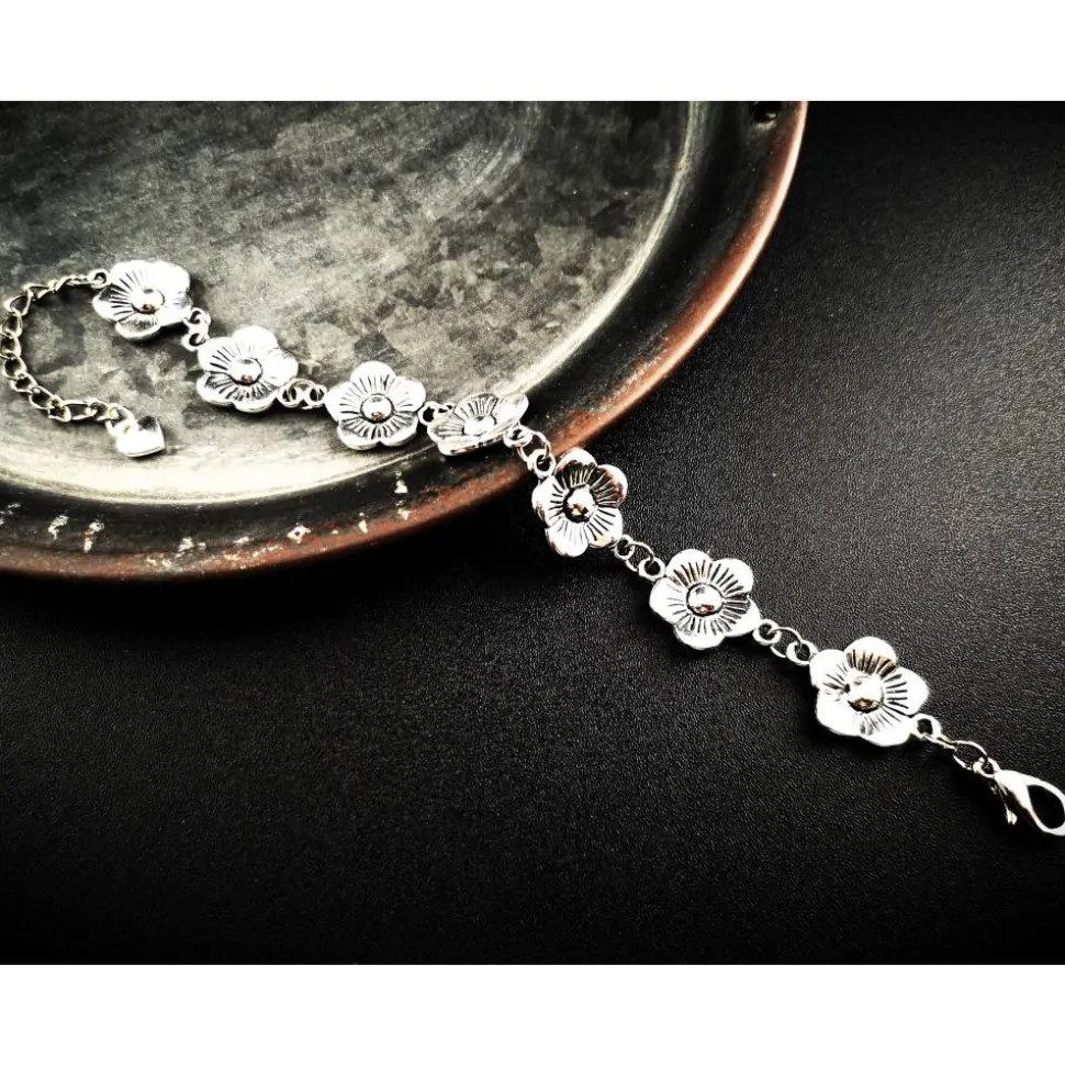 Die filigranen Blumenmuster auf dem Metallarmband verleihen Ihrem Outfit eine romantische Note und lassen Sie strahlen. Mit einer Länge von 18,50-23,50 cm ( Verlängerungskettchen) kann das Armband individuell angepasst werden, um perfekt um Ihr Handgelenk zu passen.