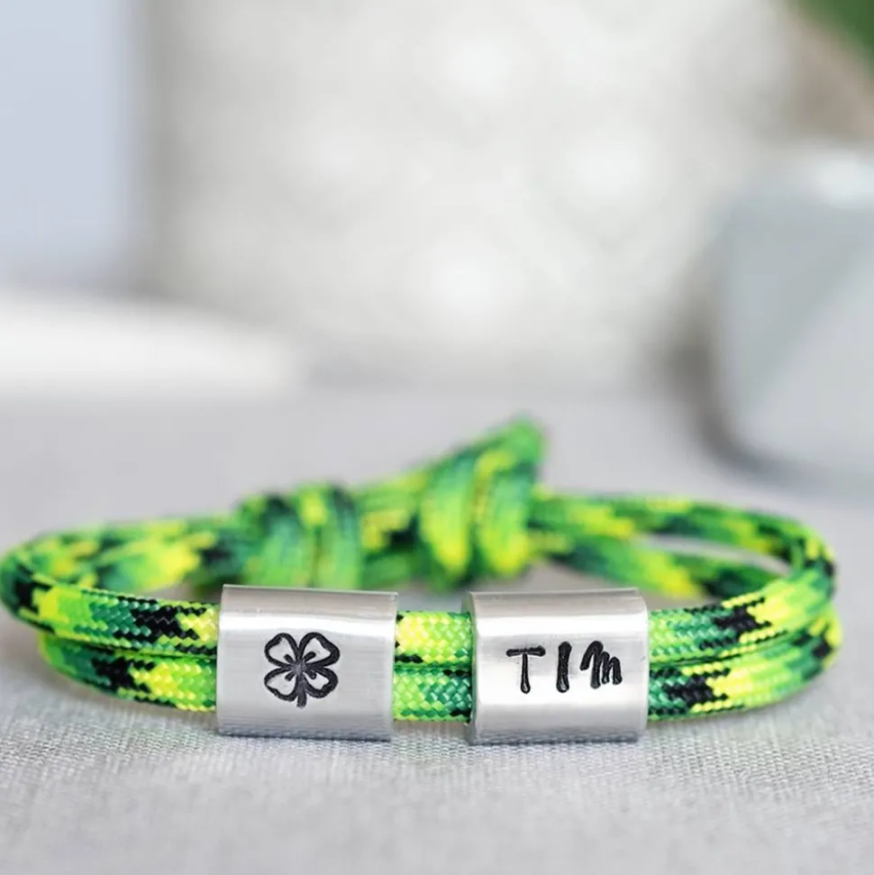 Armband personalisiert mit Gravur handgestempelt zur Taufe, Kommunion, Geburtstag, Schulanfang, Konfirmation, ichthys, Kreuz
