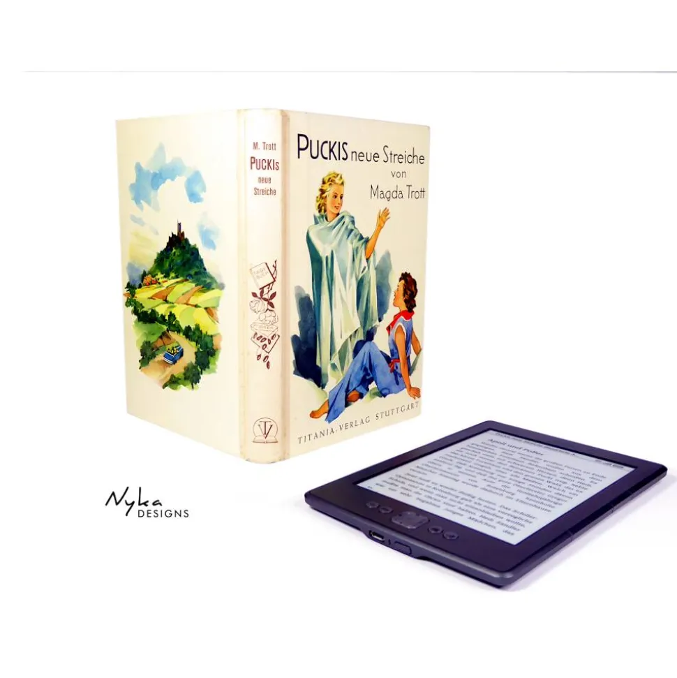 Schreib mir, wenn du Interesse an einer Spezialanfertigung hast. Ich suche gern einen bestimmten Bucheinband für dich oder fertige eine eReader-Hülle aus deinem eigenen Buch für dich an!
