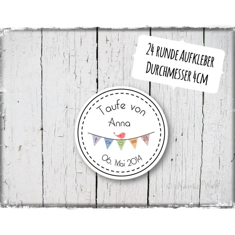Du erhältst 24 Aufkleber auf vorgestanzten DIN A4-Bögen.