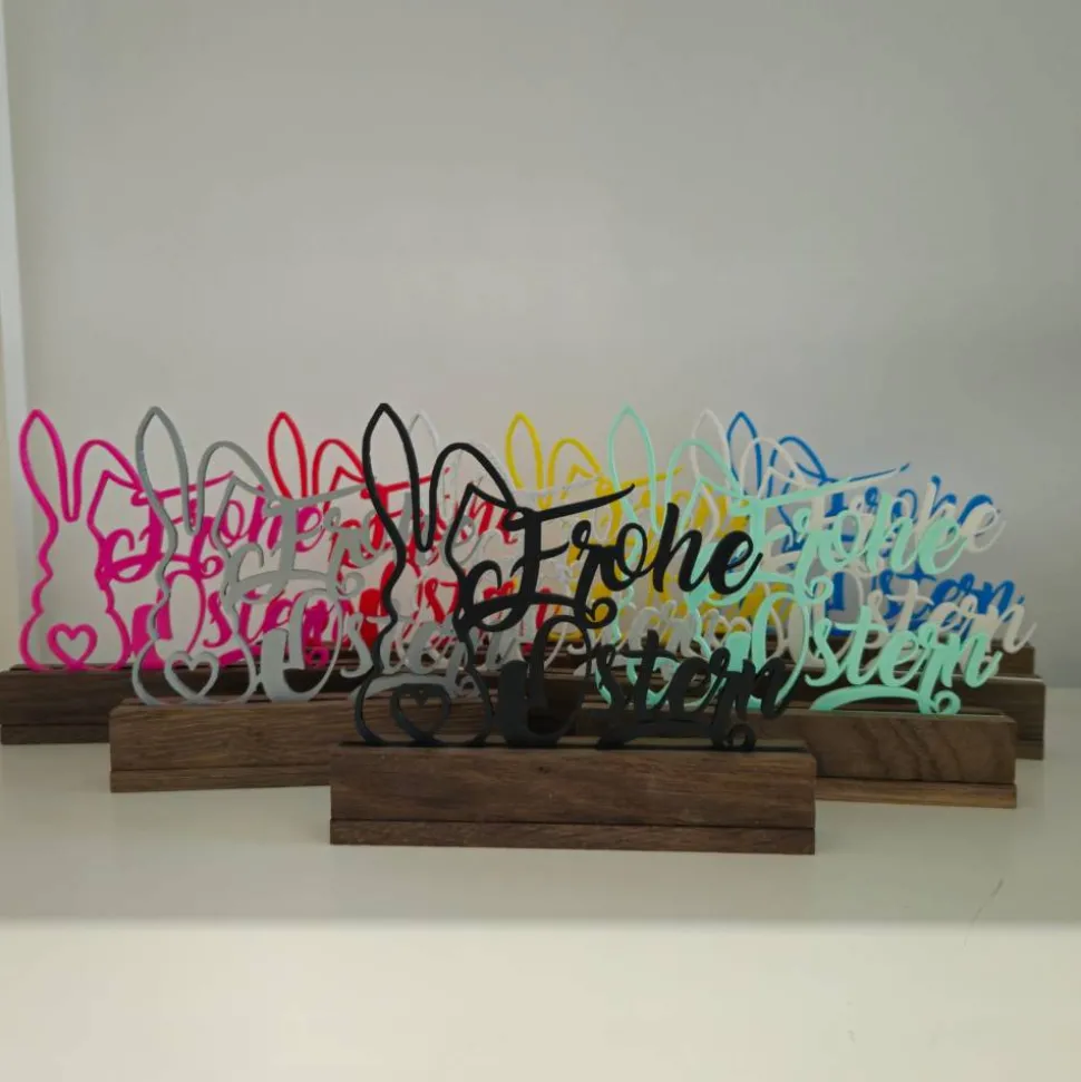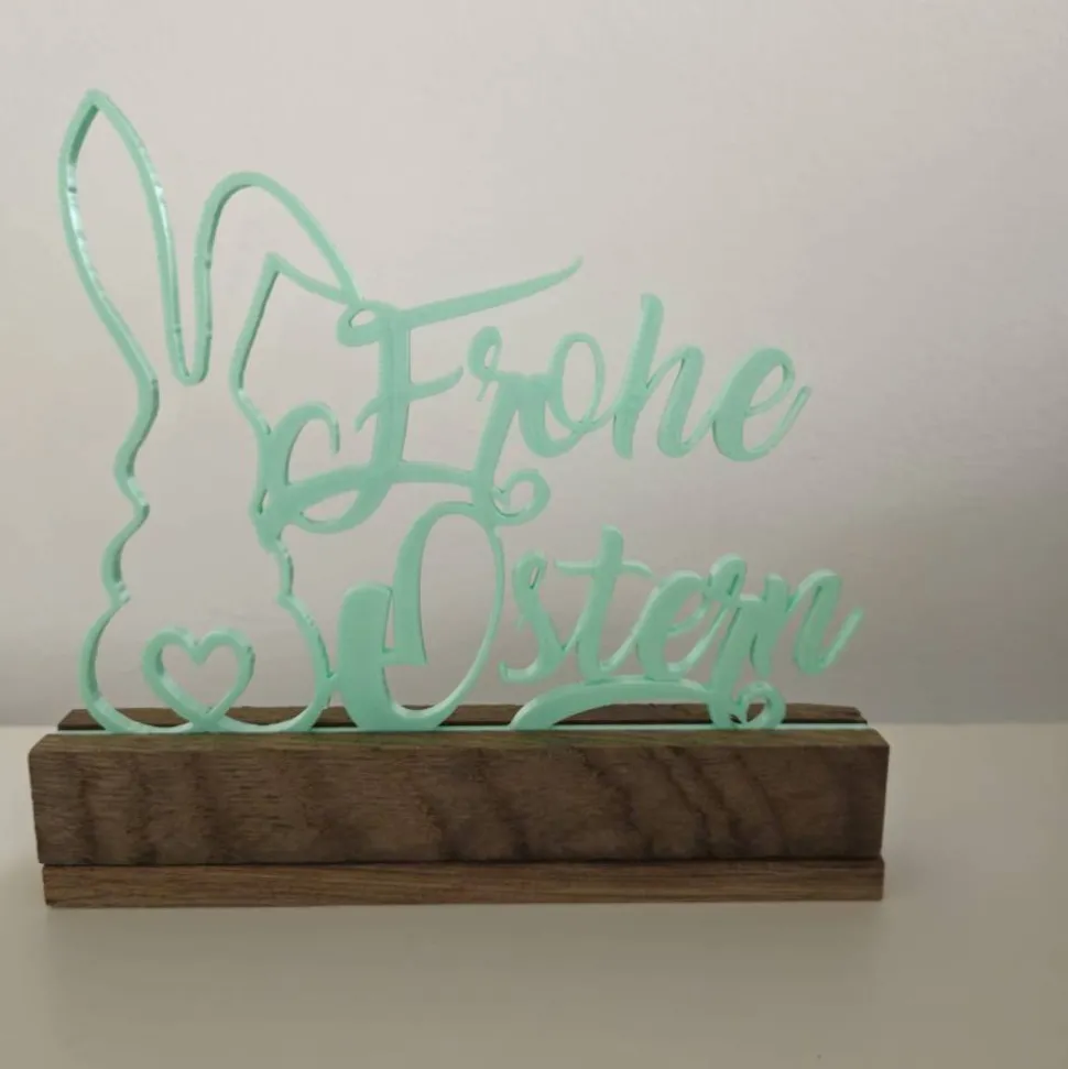 Der Aufsteller besteht aus Eichenholz sowie PLA.