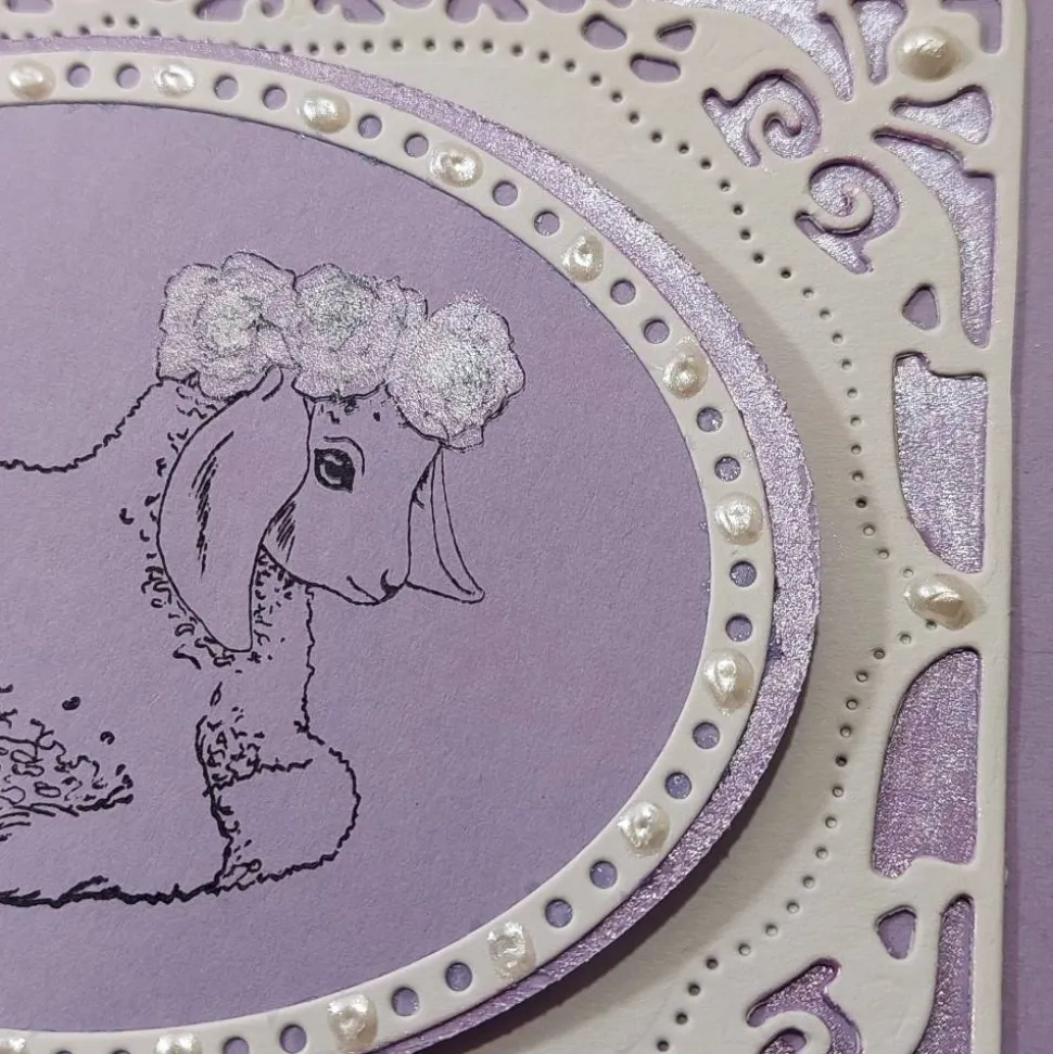 mit entzückendem Lamm-Stempel gestempelt und mit Glanzfarbe coloriert.