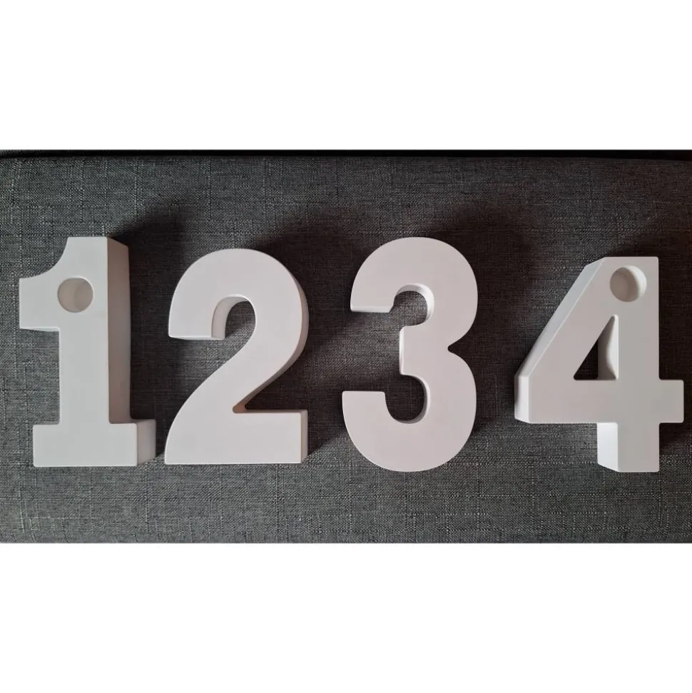 Maße der Zahlen: ca. H 13 – 14,5 x B 6 – 10 x T 2 cm