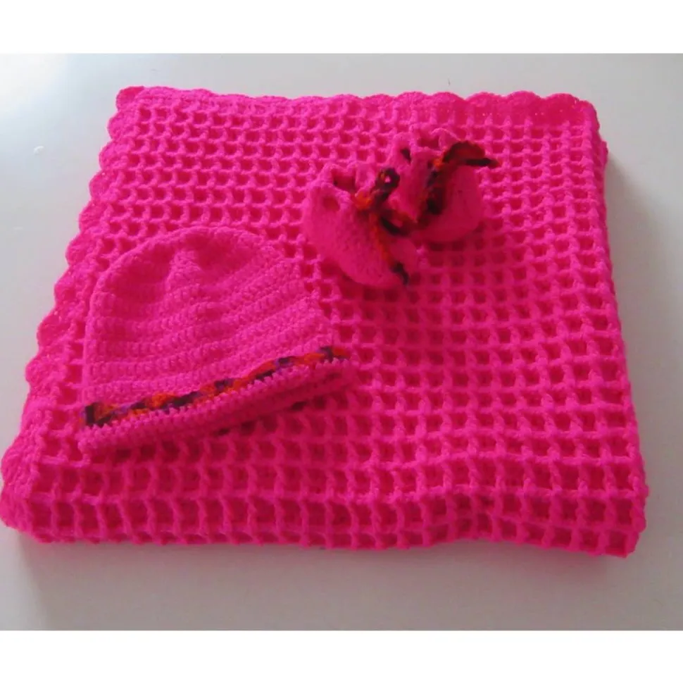 Die Babydecke überzeugt durch ihre strahlende Farbe und das schöne Waffelmuster.