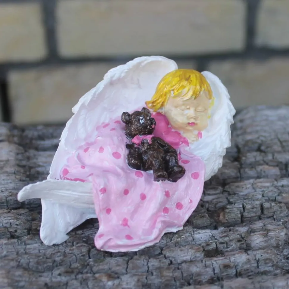 Dekofigur Baby Mädchen mit Teddy in Engelsflügel, Kunststein(Superhartgips), handbemalt