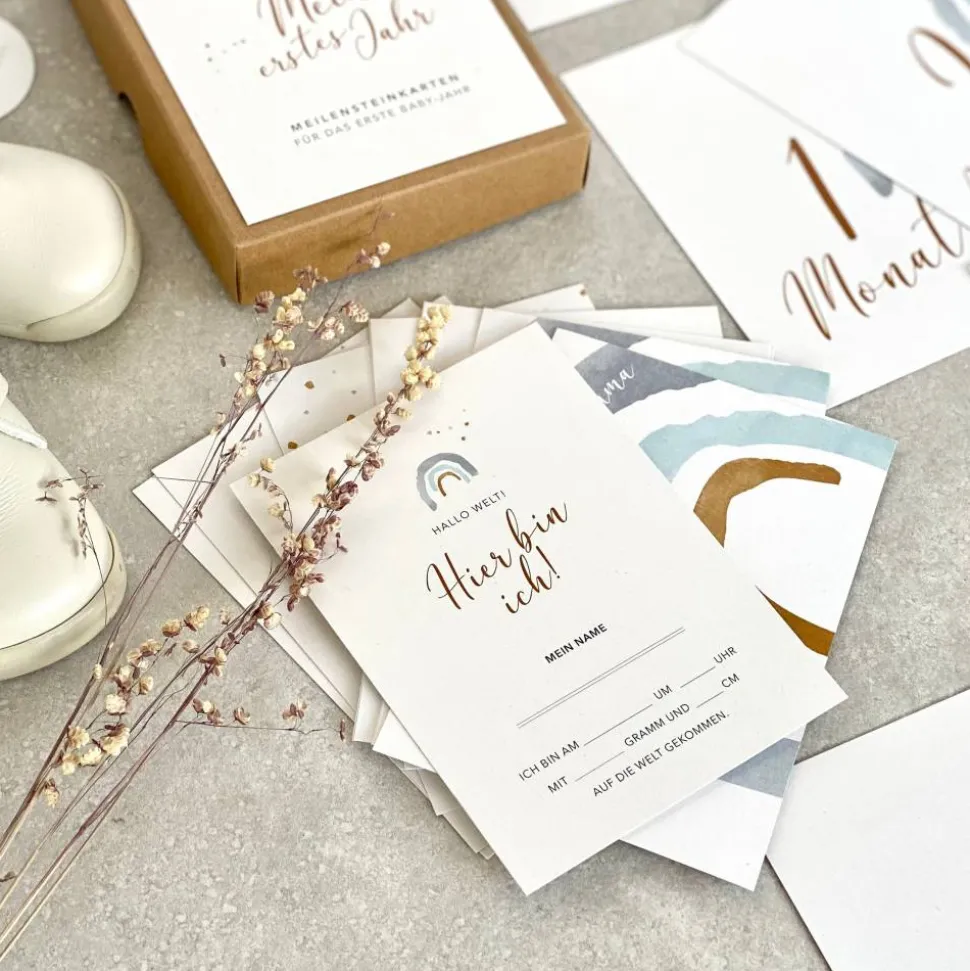 Das erste Babyjahr vergeht wie im Flug. Leider vergisst man auch viele Ereignisse sehr schnell wieder. Diese Meilensteinkarten sind eine schöne Möglichkeit, ganz besondere Augenblicke festzuhalten.