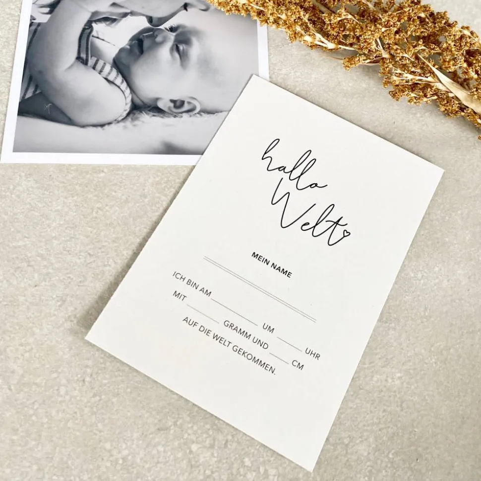 – Hallo Welt! Hier bin ich. (mit Platz zum Eintragen der Geburtsdaten)