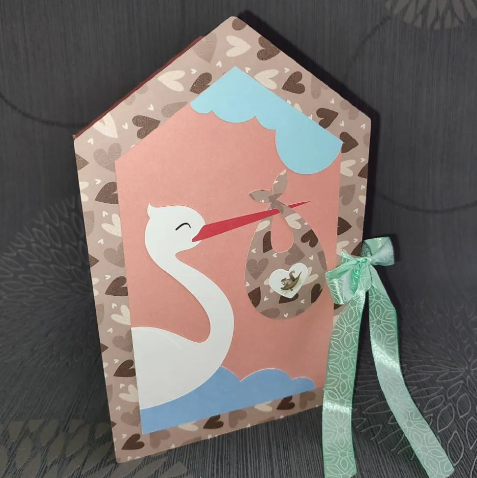 Ich habe sie aus verschiedenen Designepapieren gebastelt. Geschlossen wird sie mit einem Schleifenband. In die 8 kleinen Kisten können kleine Geschenke und Zettelchen gelegt werden. Die Eltern des kleinen neuen Erdenbürgers können sie auch als Erinnerungsbox benutzen.