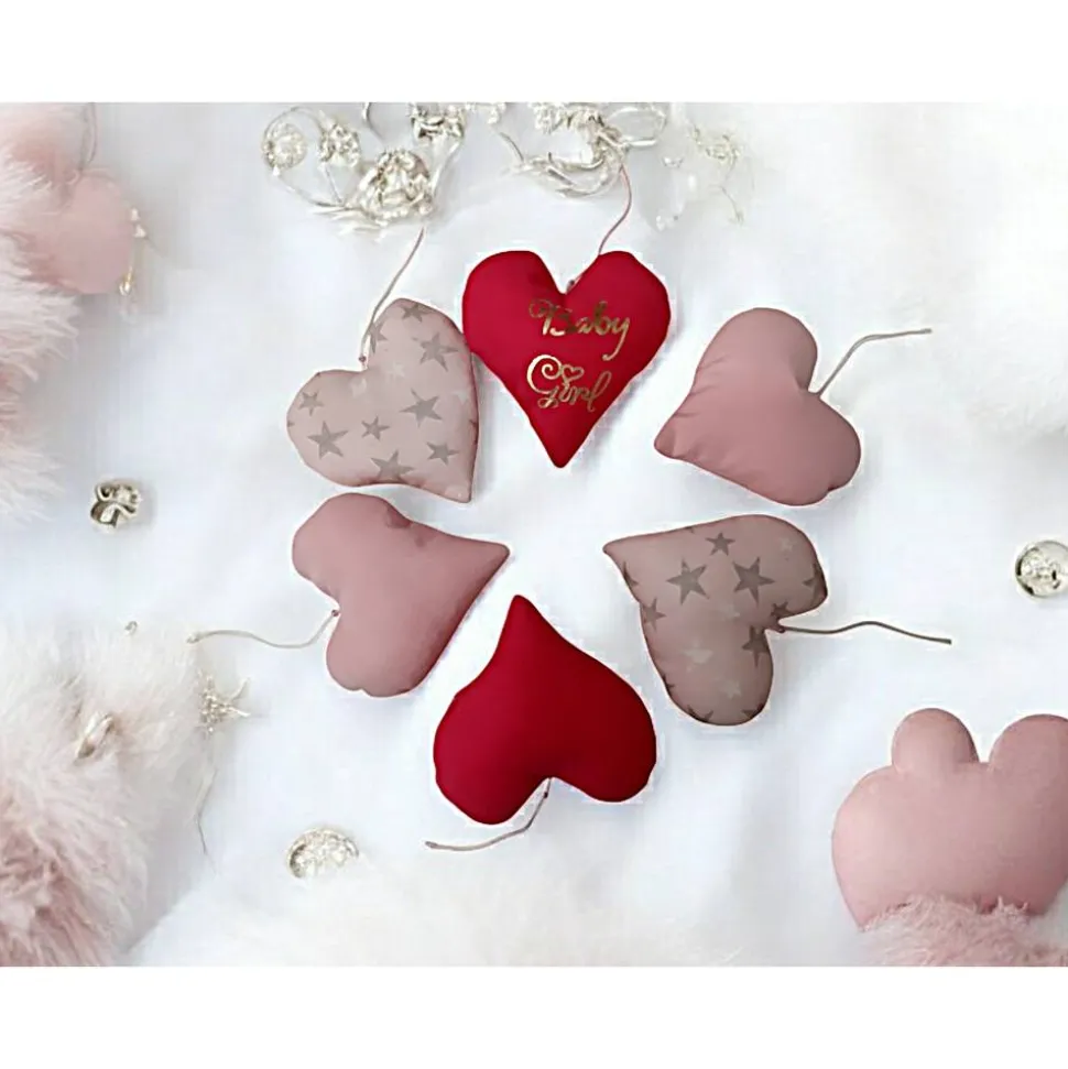 5 Stoffherzen und 1 Stoffherz mit der Aufschrift „Baby Girl“ gefüllt mit Füllwatte für Deine Babyparty liebevoll gearbeitet♥ Die Deko Herzen im Set (mit jeweils einer kleinen Perle am Bändel) zum aufhängen und dekorieren. Dieses Set eignet sich auch toll zum erstellen einer Windeltorte.