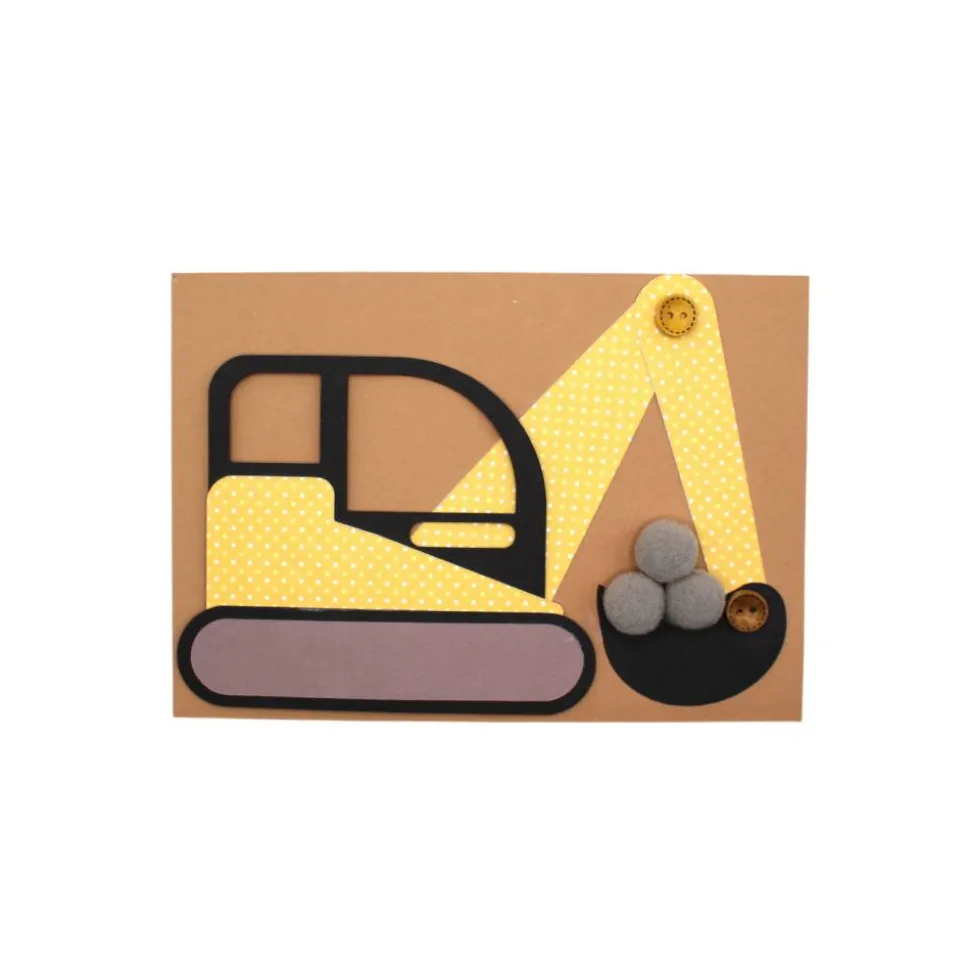 Mit liebevollen Bagger-Motiven und leicht verständlichen Bastelanleitungen ermöglicht es auch unerfahrenen Bastelkönigen eine einfache Umsetzung.