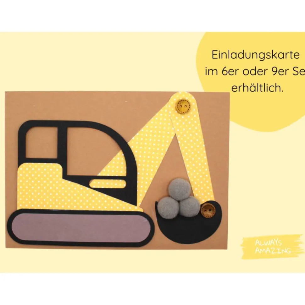 Dieses kreative DIY Bastelset enthält alles, was du brauchst, um einzigartige und personalisierte Einladungen zu erstellen, die kleine Bauarbeiter-Herzen höher schlagen lassen.