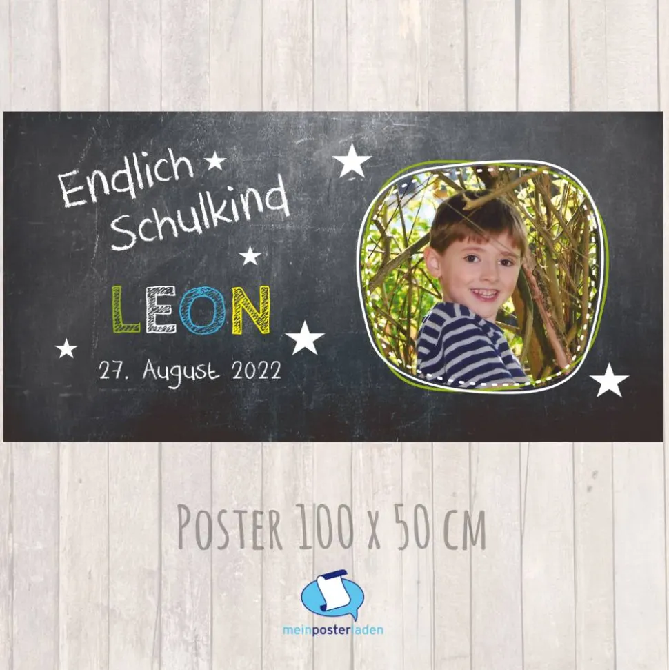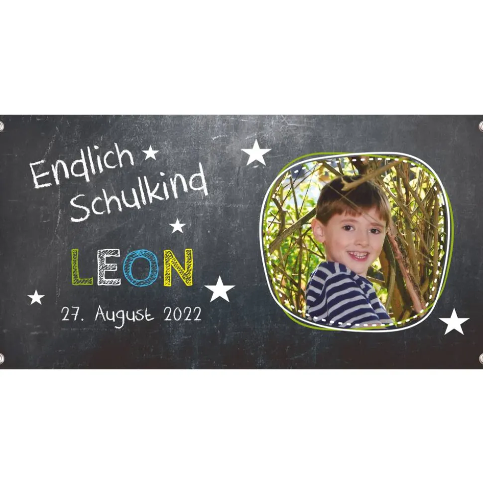 Banner zur Einschulung 100 x 50 cm – mit Foto personalisierbar | Tafeloptik Sternchen