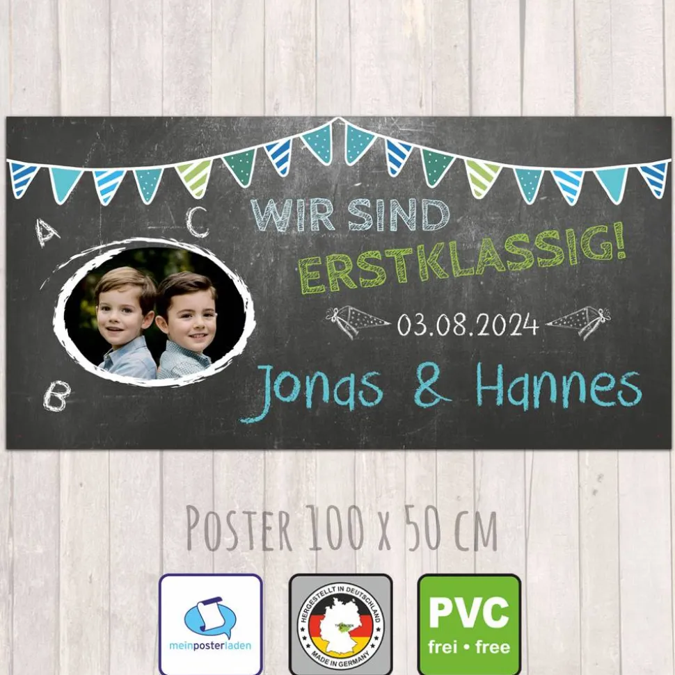 Bedrucktes und personalisierbares Banner zum Schulanfang für Zwillinge (wenn du für mehr Kinder einen Banner möchtest, schreibe mir vor dem Kauf bitte eine Nachricht, dann gestalte ich dir gerne ein passendes Banner)