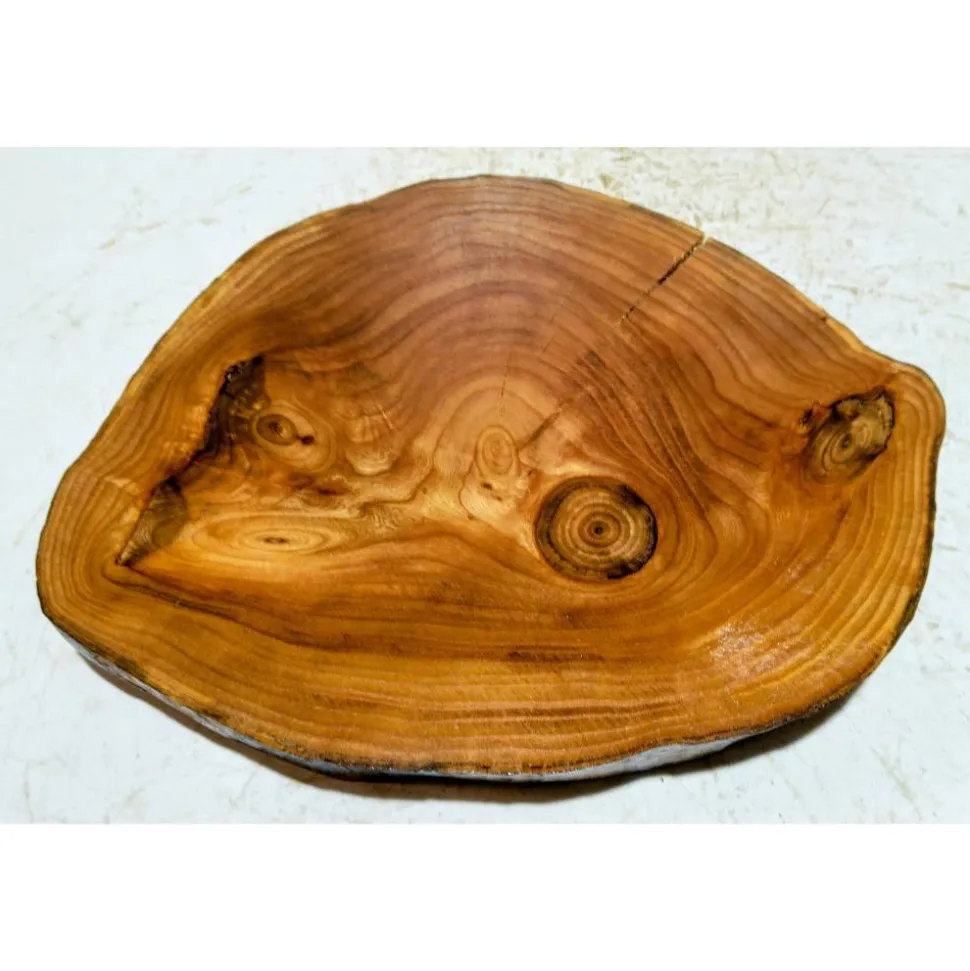 Rand ohne Rinde unbearbeitet.Rückseite grob vorgeschliffen, siehe letztes Bild.
