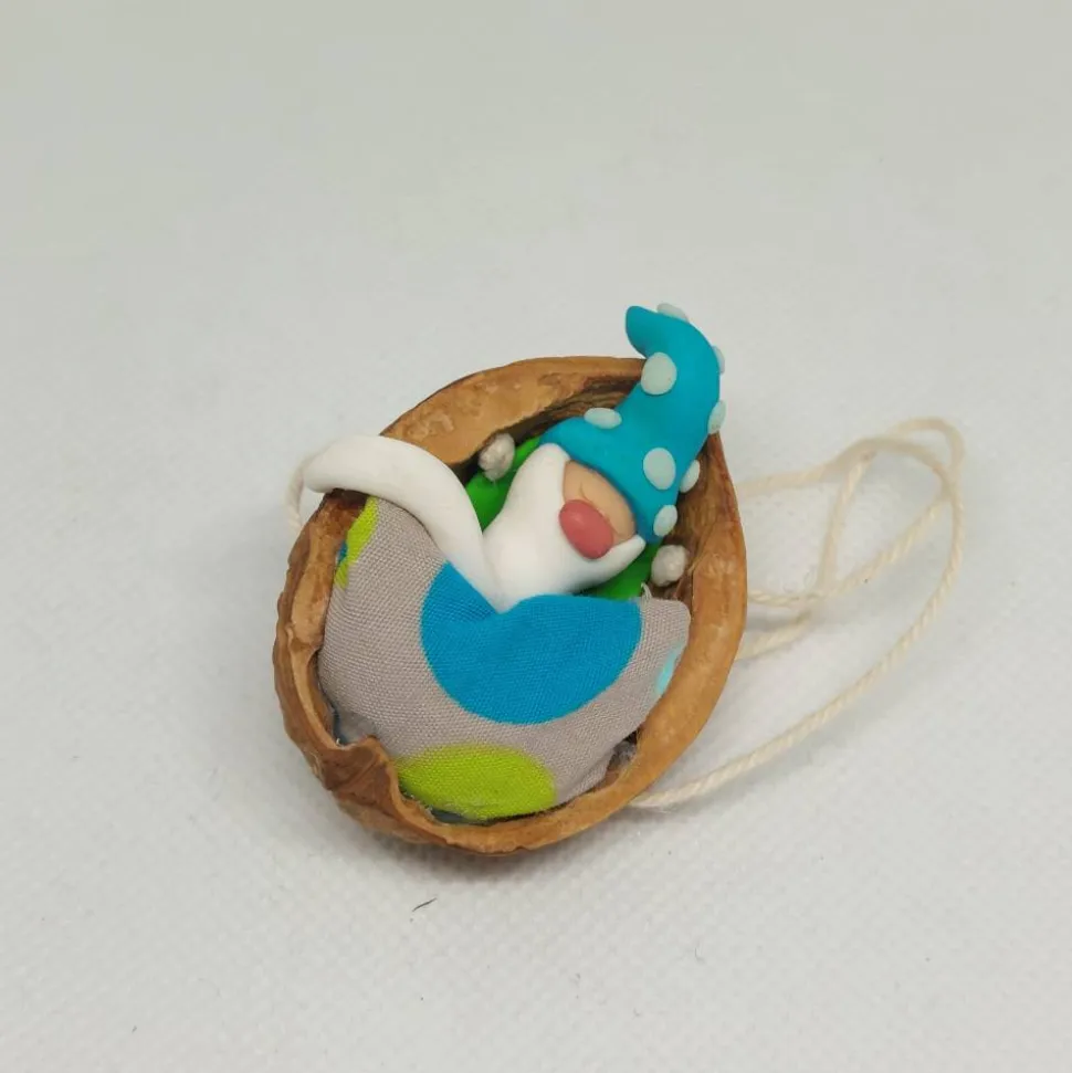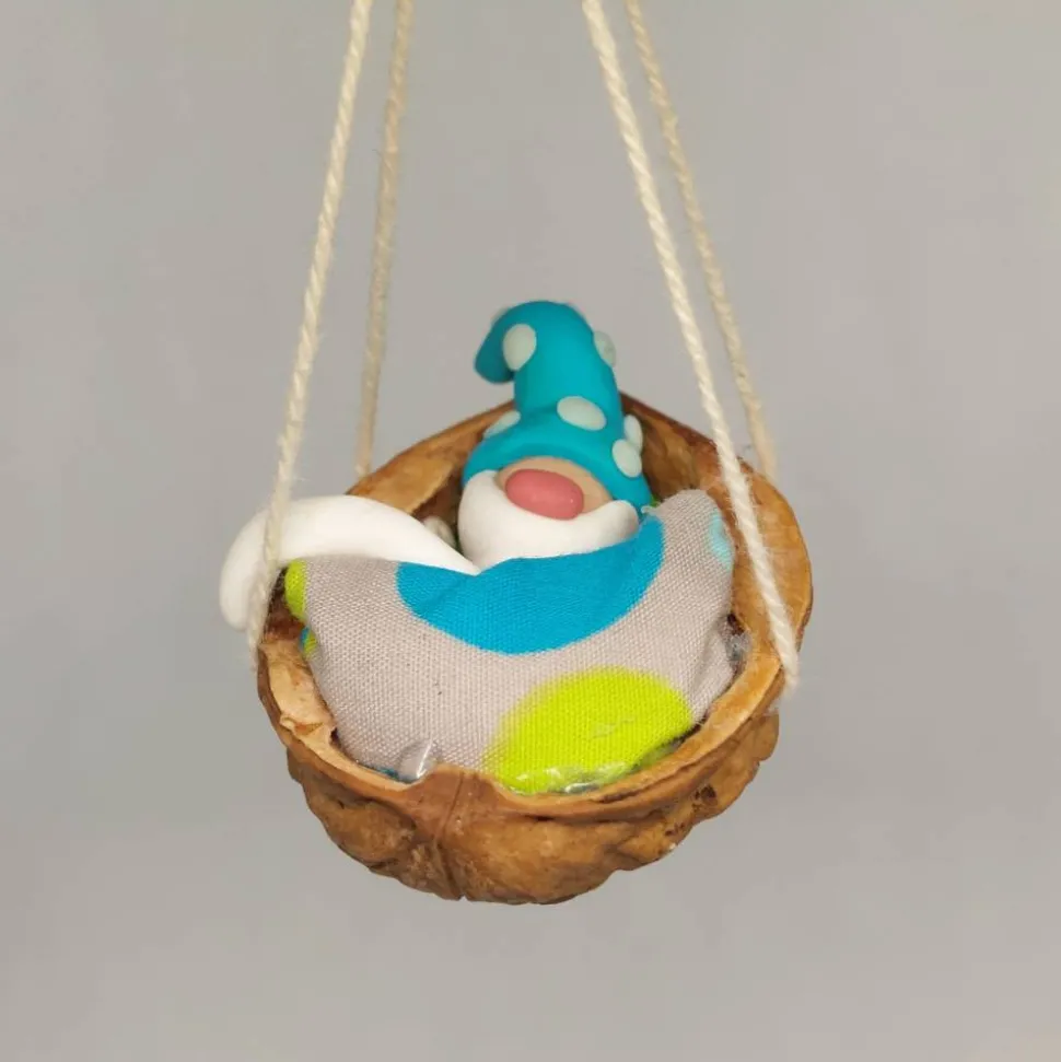 Wichtel im Walnussbettchen zum hinhängen.