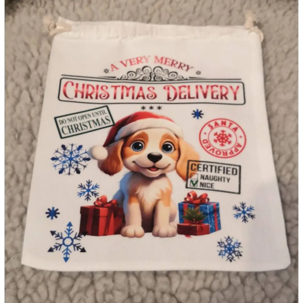 Der Beutel ist ca. 20x 24 cm gross und wird über 2 Kordeln zugezogen.