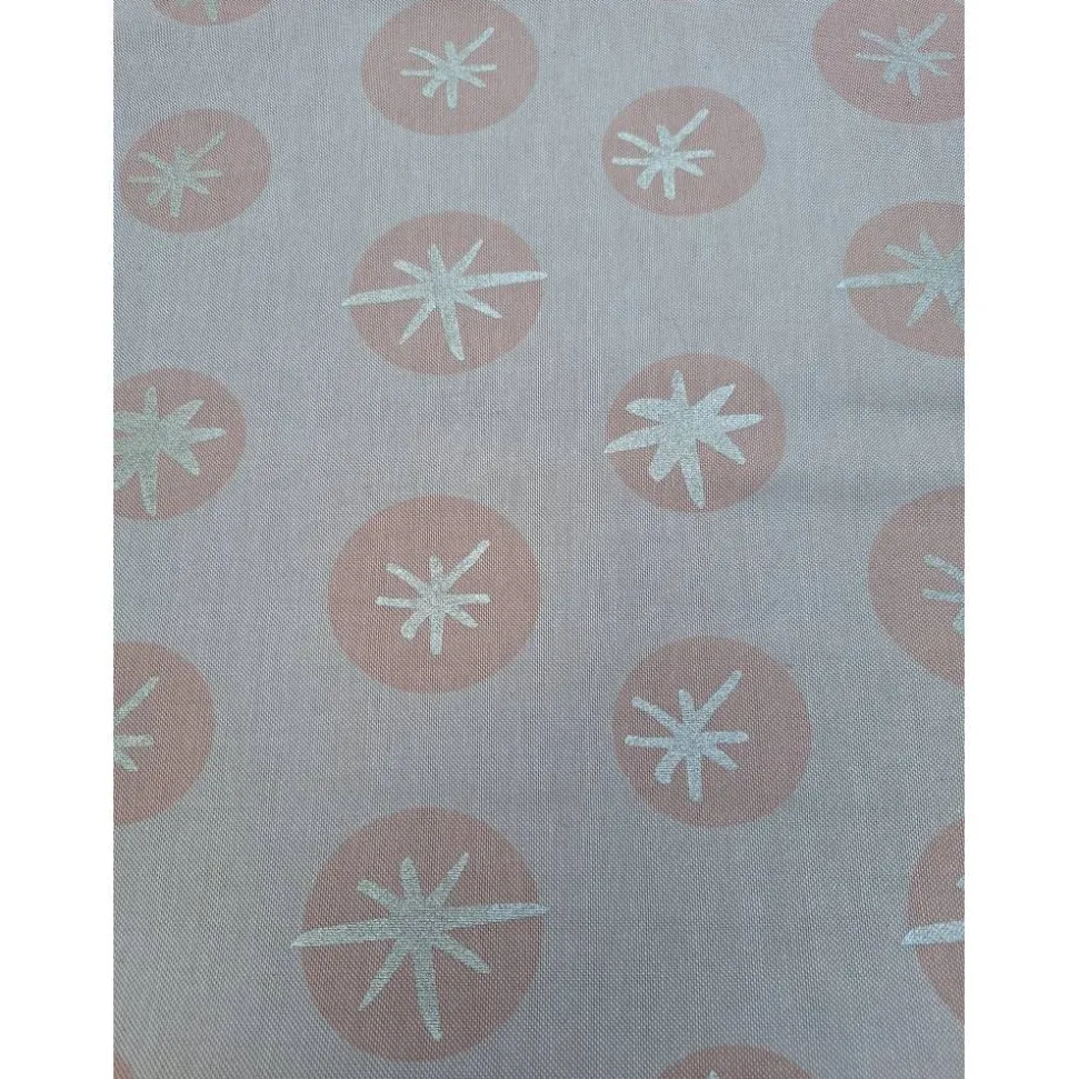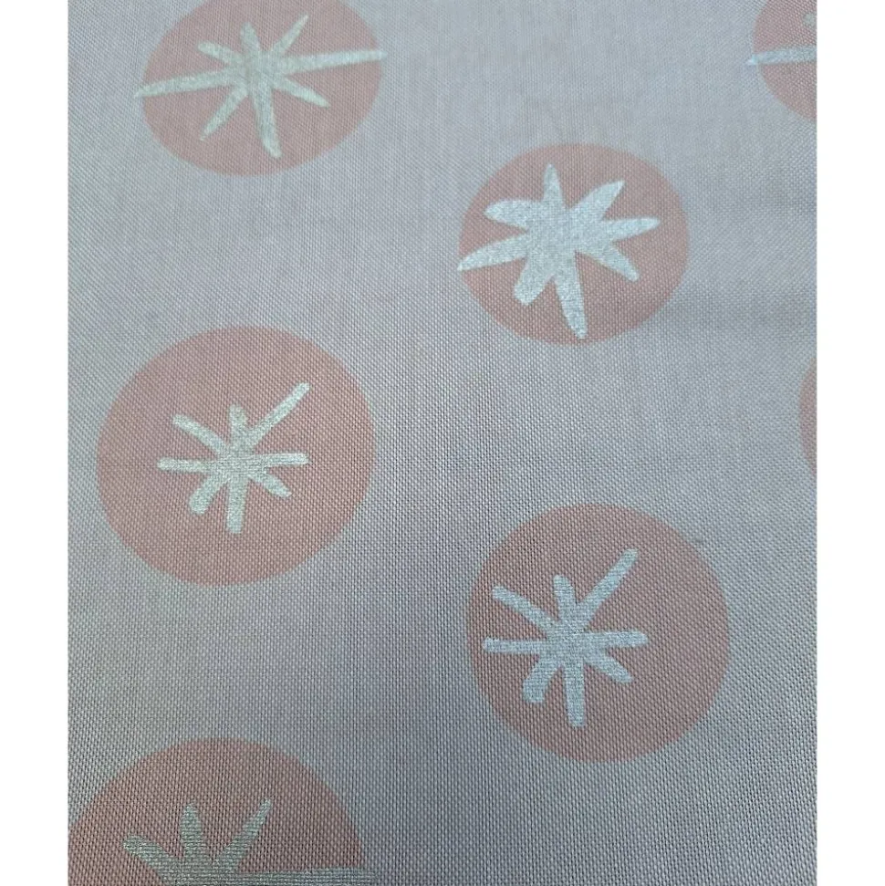 Wunderschöner Baumwollstoff mit Kugeln in Lachs und Sternen in gold bedruckt.