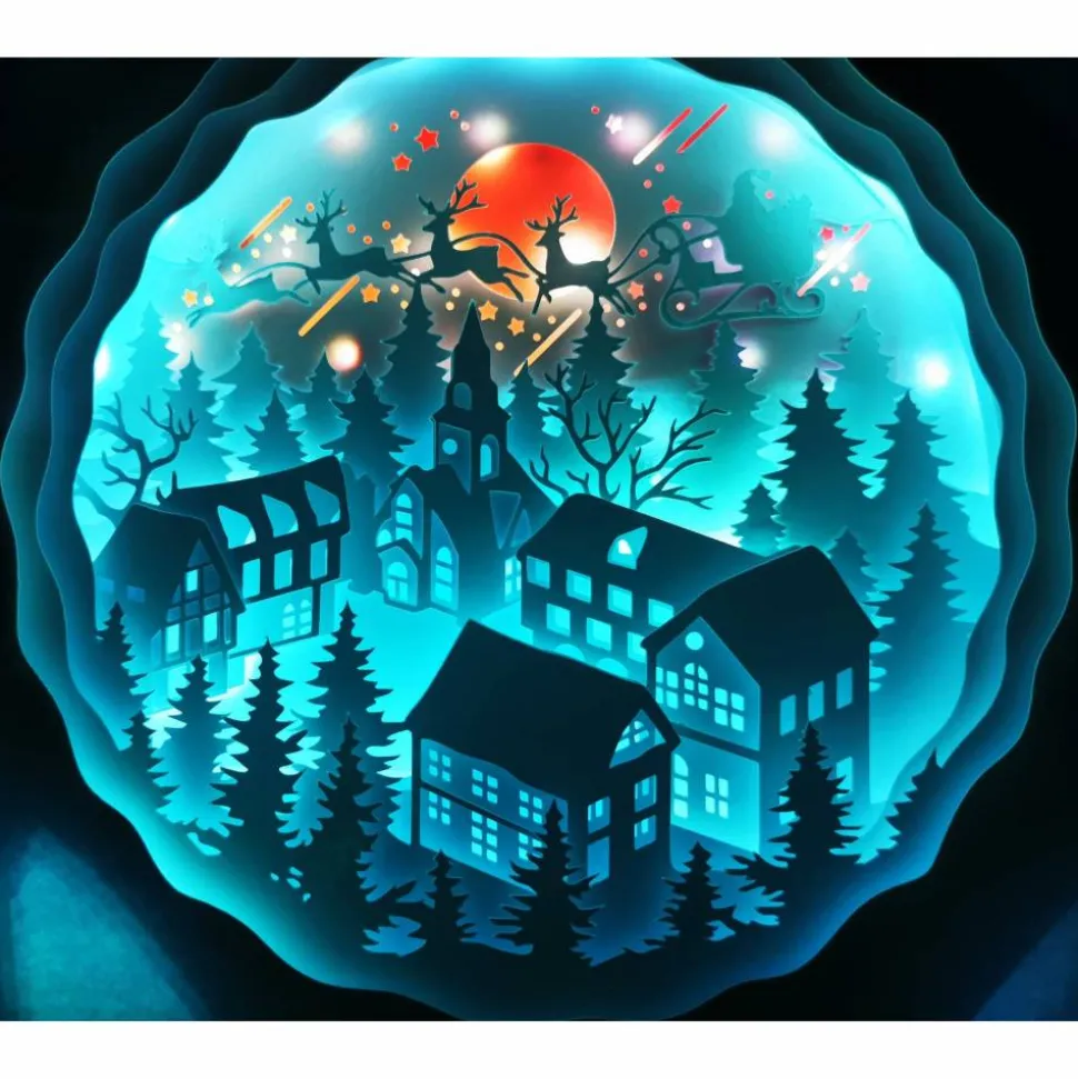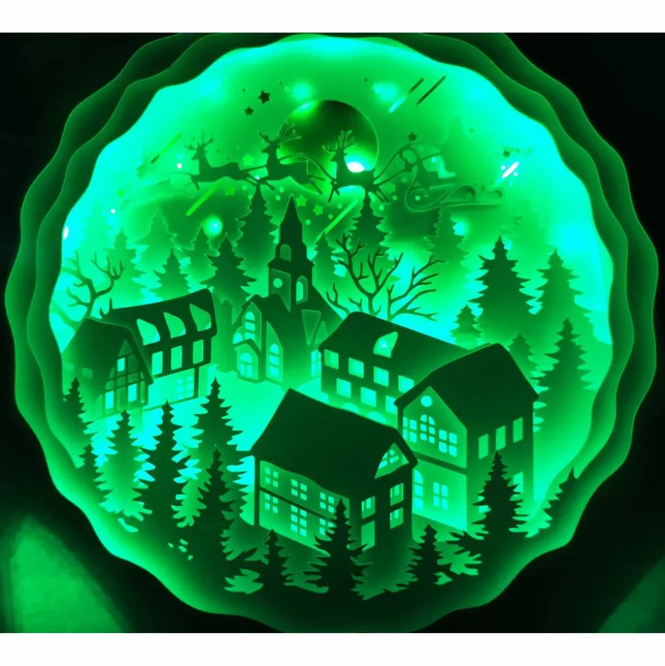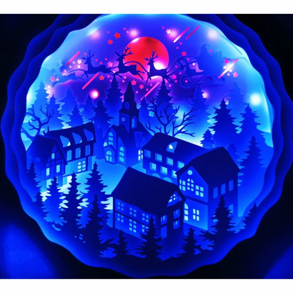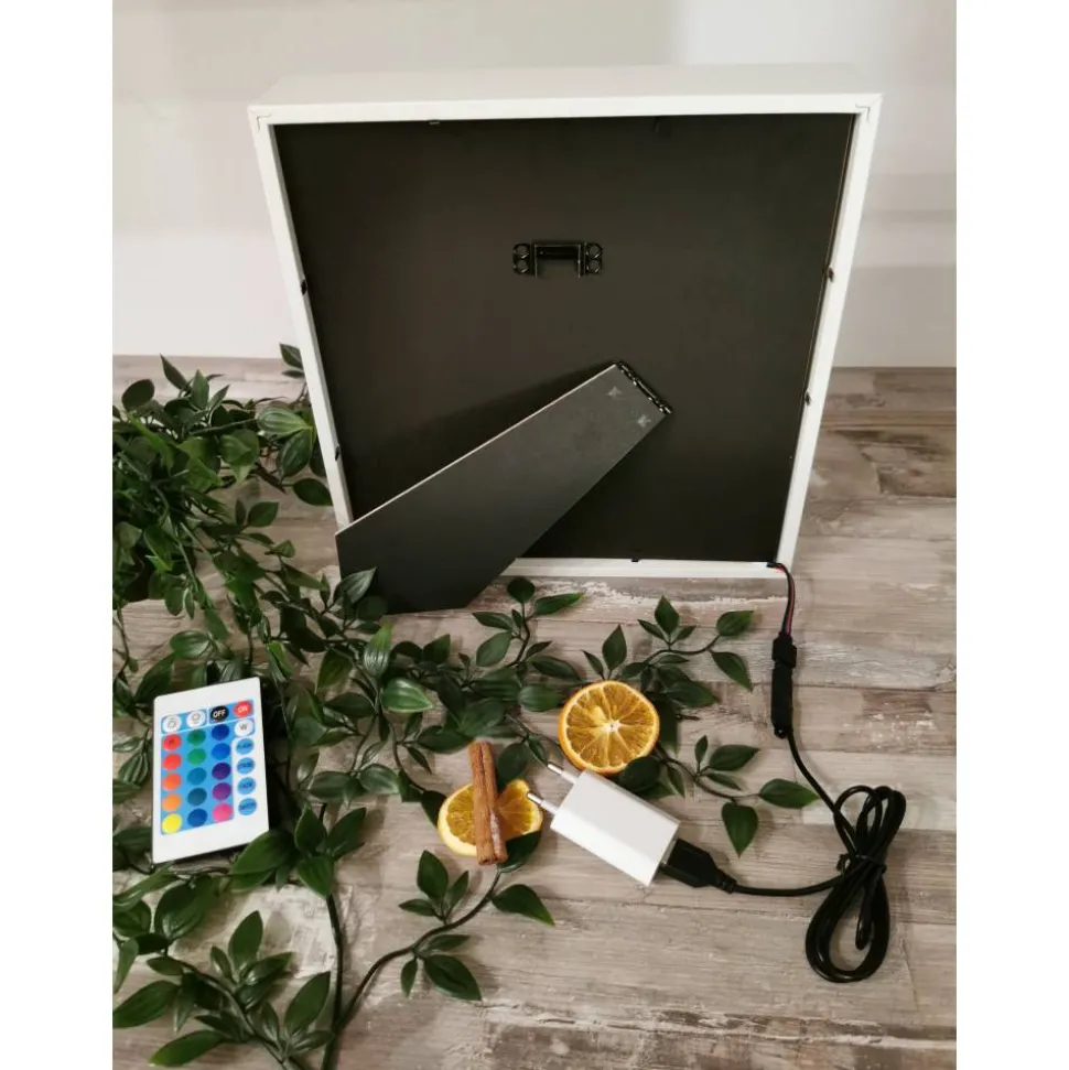 Das Motiv wurde aus mehreren Lagen stabilen Cardstock zusammengesetzt, die Led Beleuchtung wahlweise Farbwechsel oder einzelne Farben runden das Bild perfekt ab. Sie können zwischen 12 Farben wählen oder 4 Farbprogramme indem die Farben gemixt werden, auch die Helligkeit ist regulierbar. Das Licht lässt sich einfach per Fernbedienung An und Ausschalten. Der Led Lichterstripe wird per Strom betrieben.