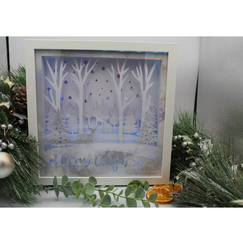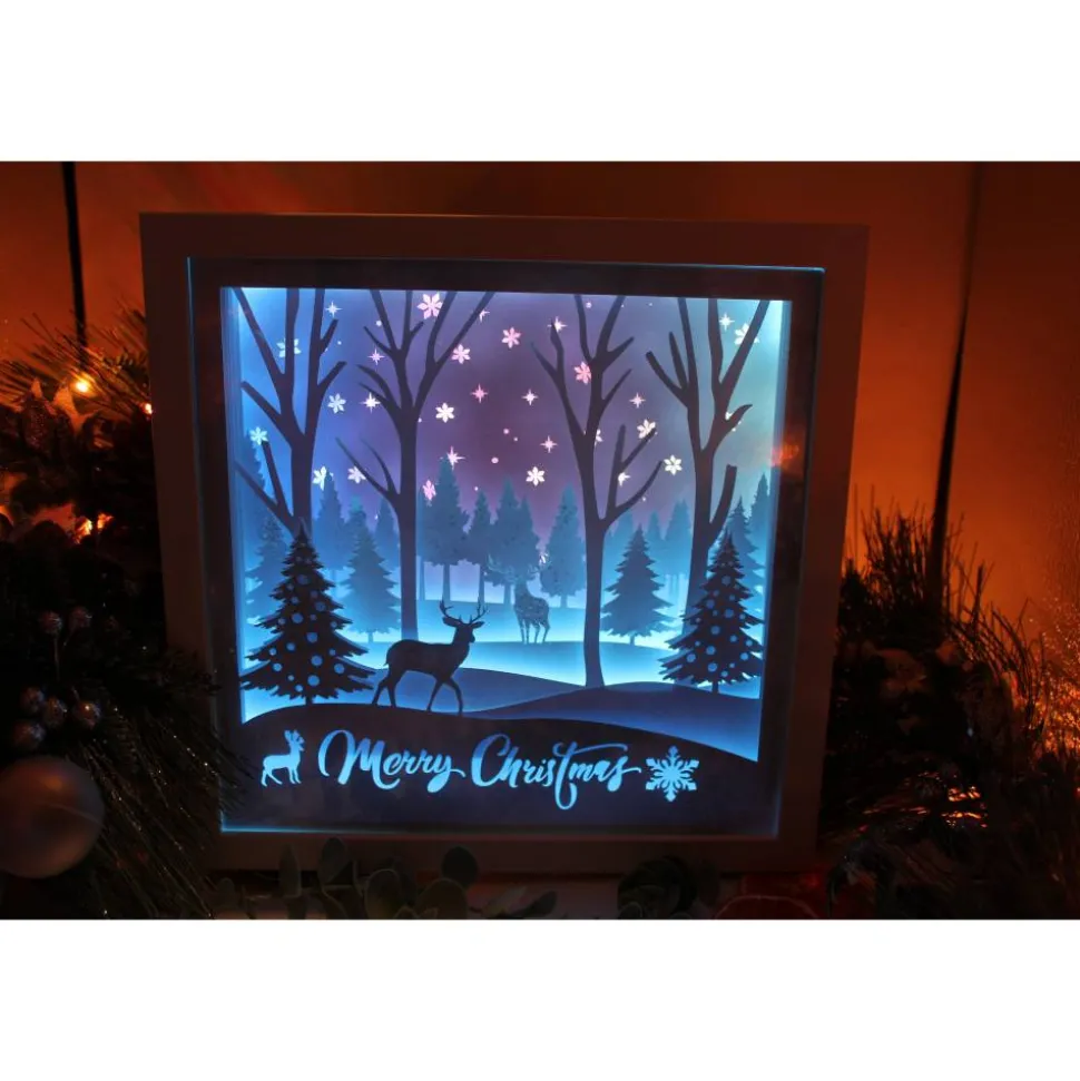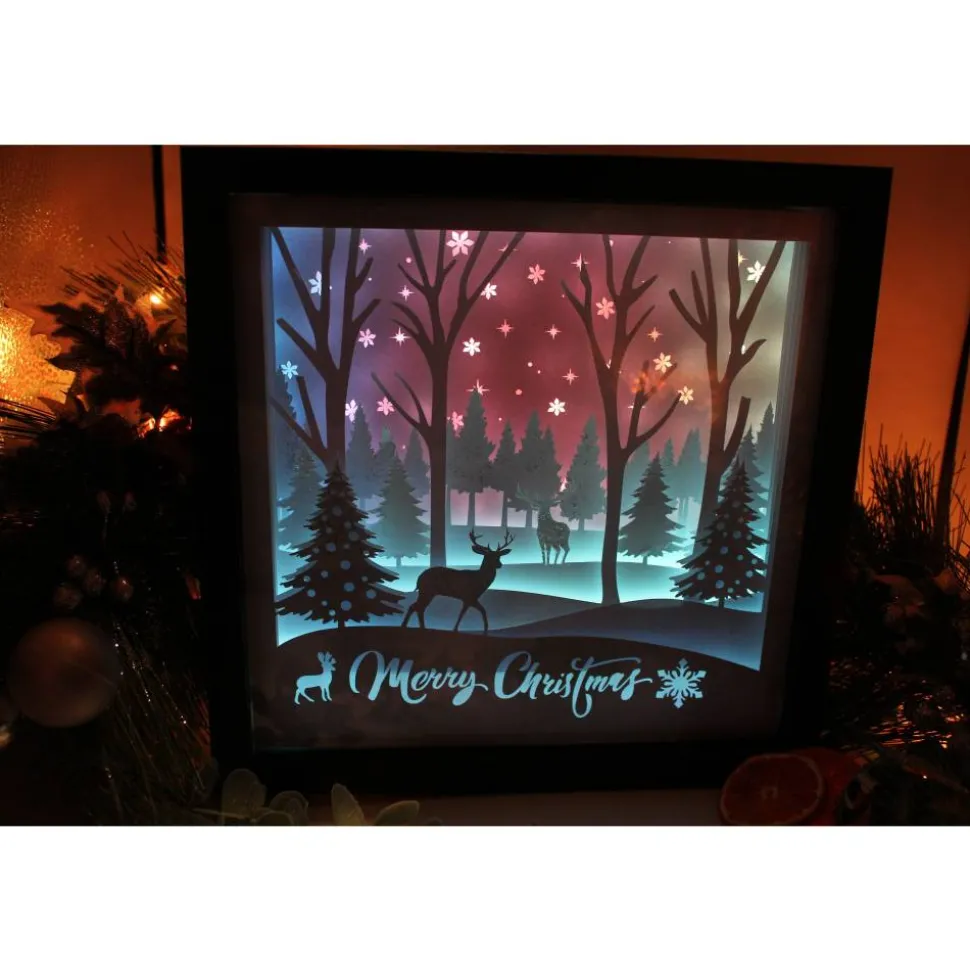 Das Motiv wurde aus mehreren Lagen stabilen Cardstock zusammengesetzt, die Led Beleuchtung wahlweise Farbwechsel oder einzelne Farben runden das Bild perfekt ab. Sie können zwischen 12 Farben wählen oder 4 Farbprogramme indem die Farben gemixt werden, auch die Helligkeit ist regulierbar. Das Licht lässt sich einfach per Fernbedienung An und Ausschalten. Der Led Lichterstripe wird per Strom betrieben.